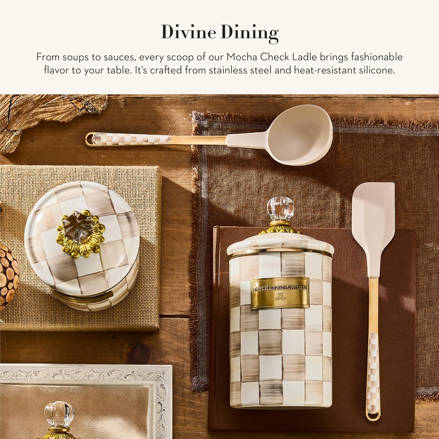 MACKENZIE-CHILDS Kitchen Ladle, Silicone Ladle Spoon for Cooking, Brown-and-White Mocha Check