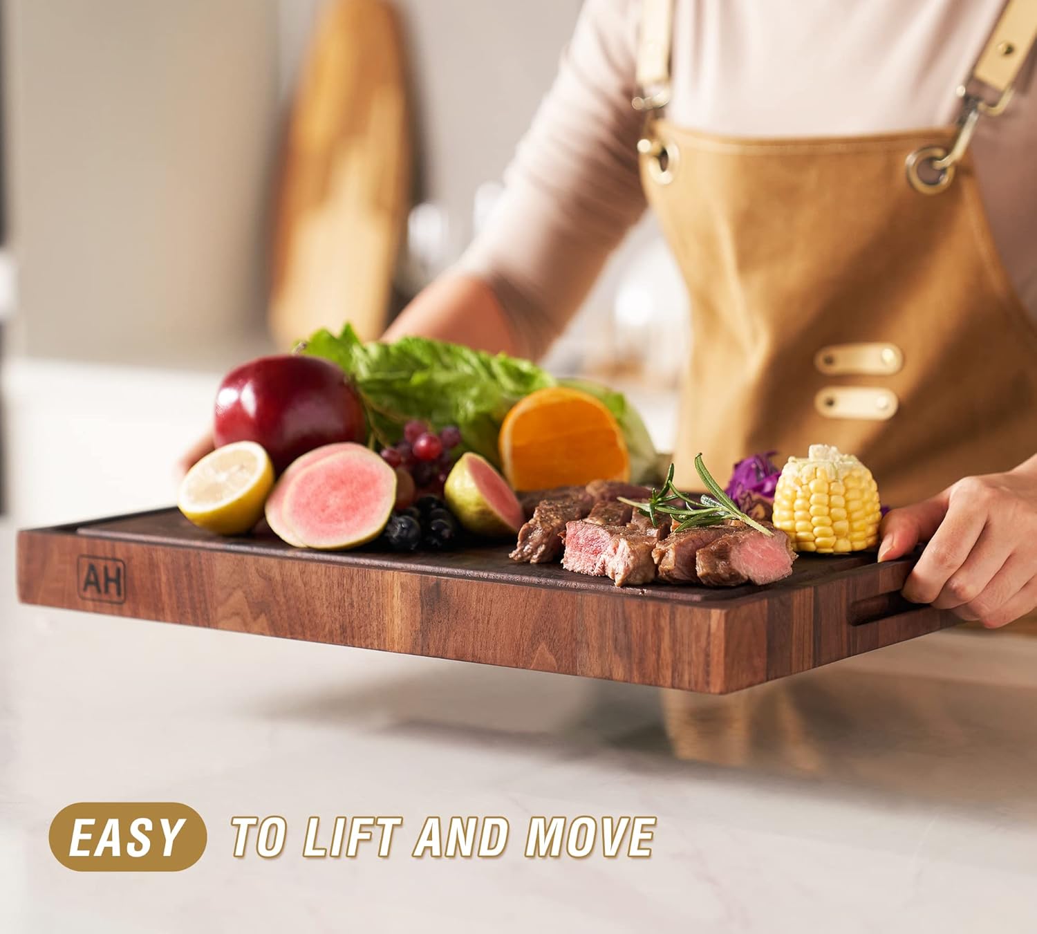 AZRHOM Large End Grain Walnut Wood Cutting Board 17x13x1.5 in Thick Butcher Block for Kitchen with Non-slip Mats Juice Groove & Handles (Gift Box)