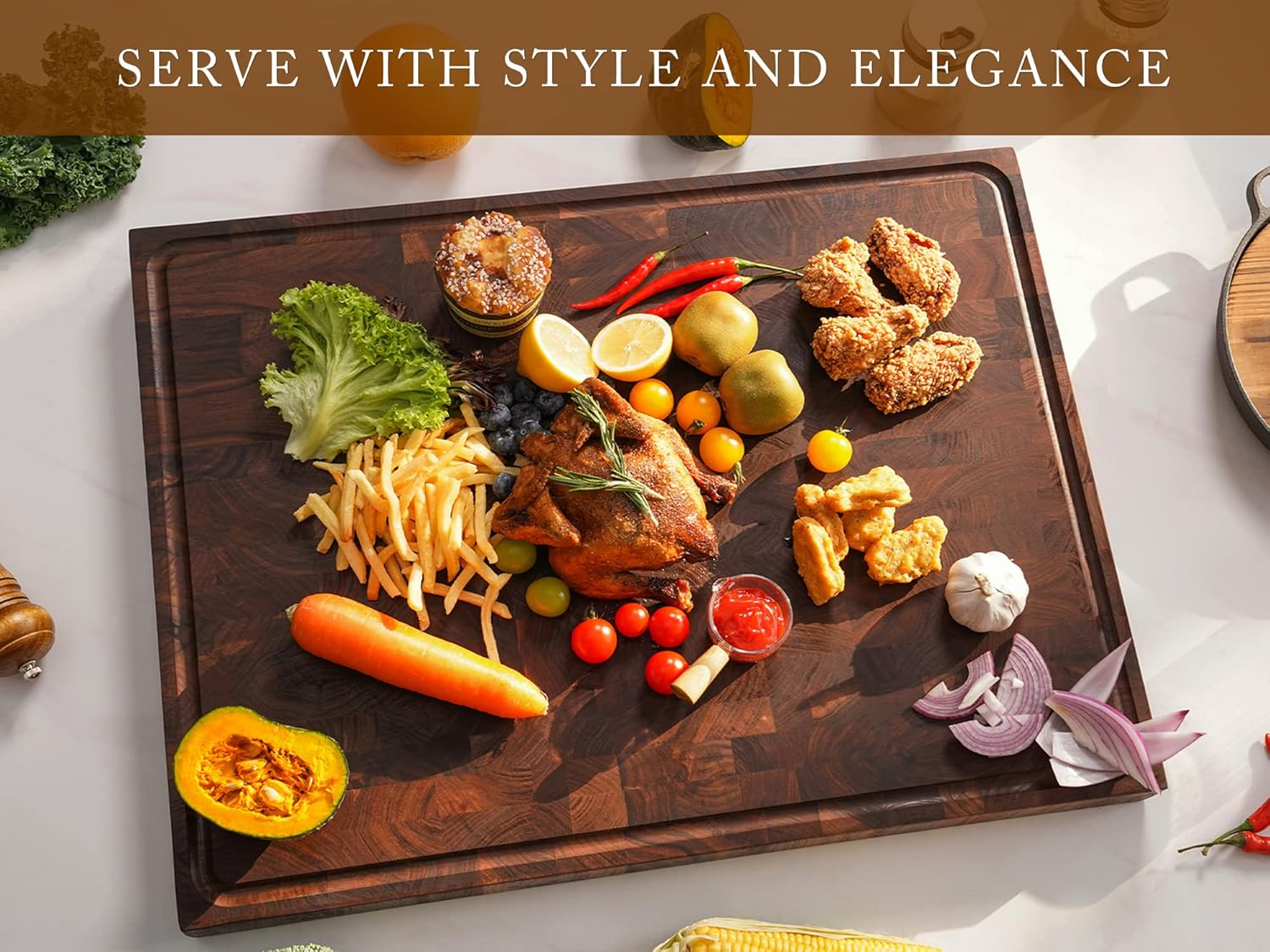 AZRHOM Extra Large Thick Walnut Wood End Grain Cutting Board 24x18x2 In, Wooden Butcher Block, Chopping Board For Kitchen with Juice Groove Handles Non-Slip Pats (Gift Box)