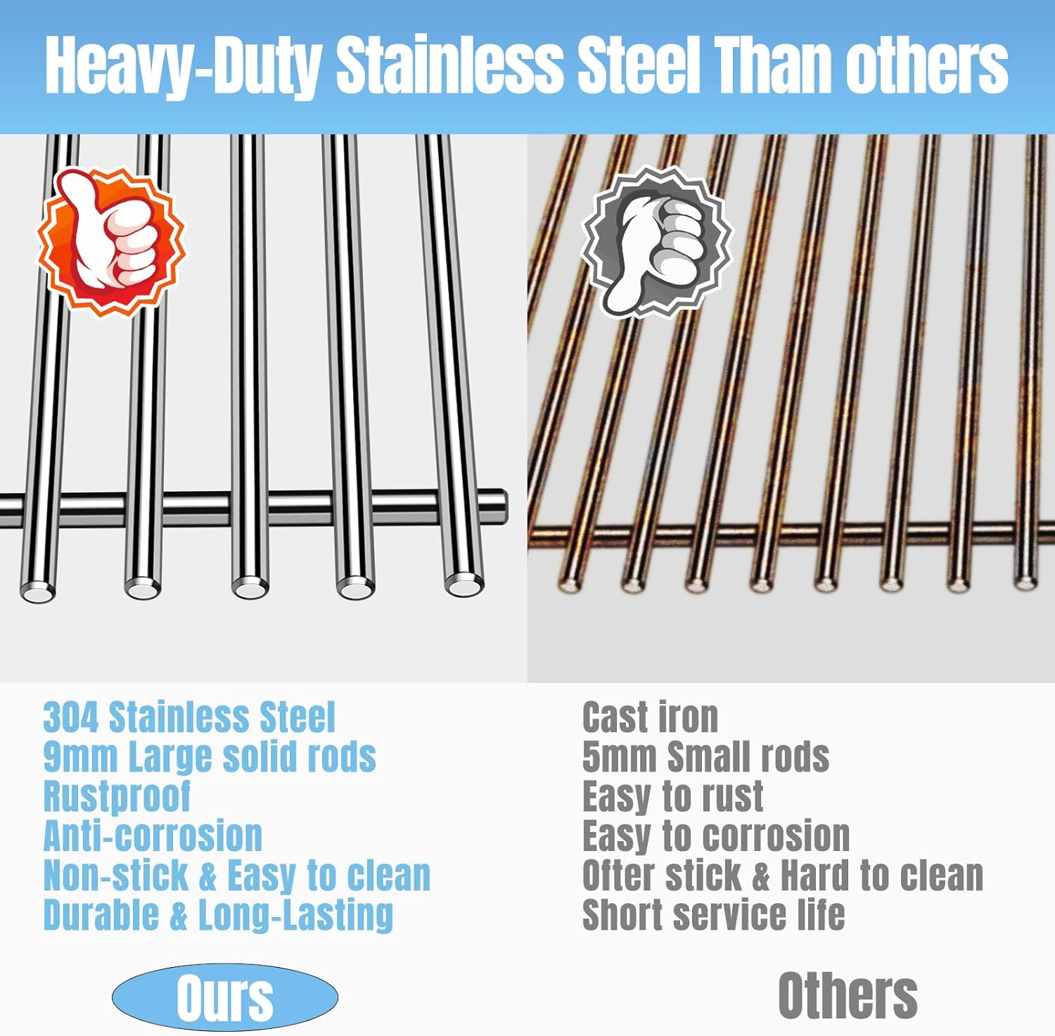 - 【Material】Made of 9mm solid rod bar food-grade 304 stainless steel to ensure long-lasting use.Resistant to high temperature and corrosion,safe contact with your food