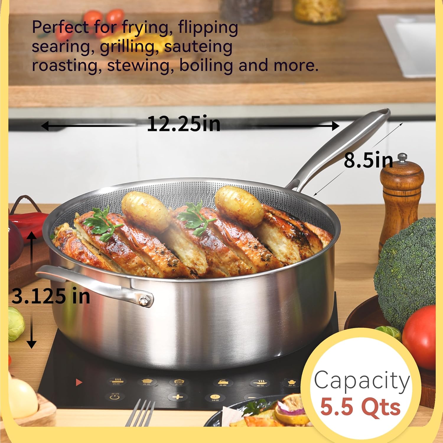 - 【Durable & Easy Maintenance】Premium tri-ply construction ensures compatibility with all stovetops and oven-safe up to 500°F.Durable design allows for using metal spatula and is dishwasher-safe, perfect for busy professionalsand families seeking convenience