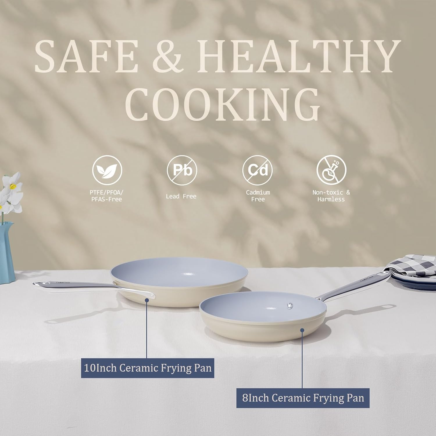 - ๐ญ๐ฌ๐ฌ% ๐๐จ ๐๐๐ซ๐ฆ๐๐ฎ๐ฅ ๐๐ก๐๐ฆ๐ข๐๐๐ฅ๐ฌ & ๐ก๐ผ ๐ฃ๐๐๐ฆ/๐ฃ๐ง๐๐/๐ฃ๐๐ข๐ - Superior to Teflon Pans: Crafted with 3X Durable Ceramic Coating, our 10-inch nonstick frying pan is 100% free from PFAS, PTFE, PFOA, lead, and cadmium. Healthier cooking with 50% less oil โ perfect for eggs, pancakes, or grilled cheese. Proven Safety: 800+ lab tests ensure zero chemical release even at 500ยฐF.