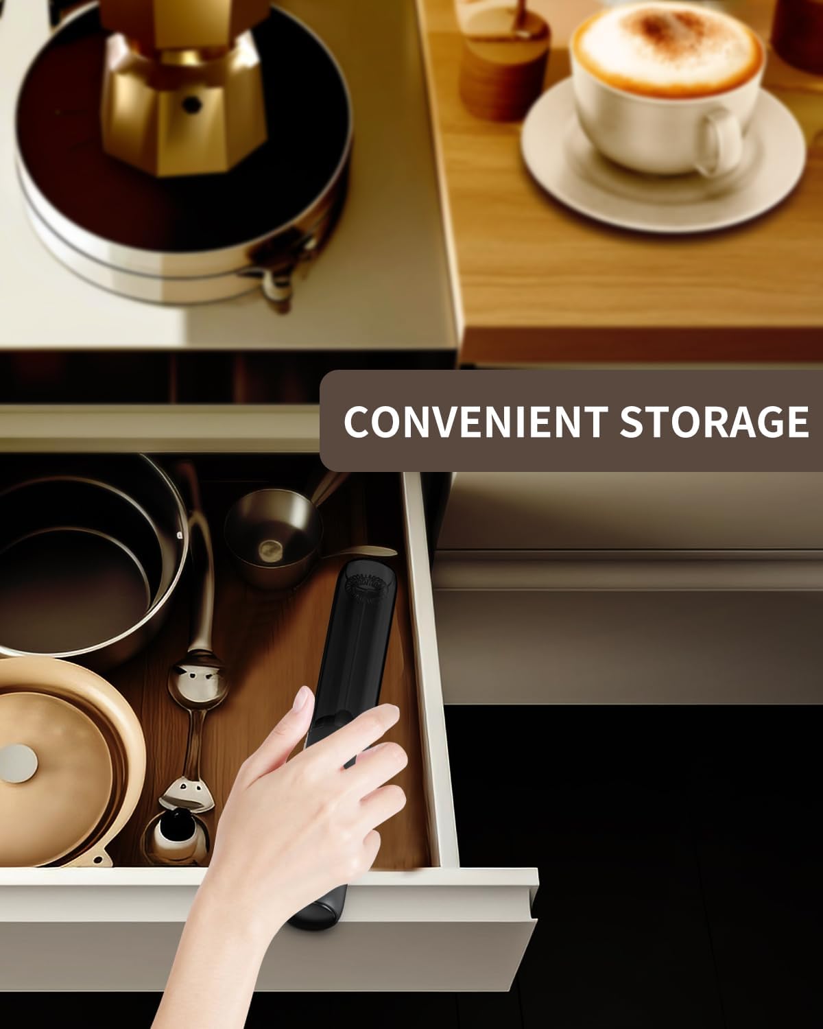 - EASY TO STORE AND CARRY: This electric milk frother features a storage tube to protect against dust and keep the whisks clean. Its lightweight and portable design allows you to easily carry it in your bag for use in hotels, offices or outdoor settings