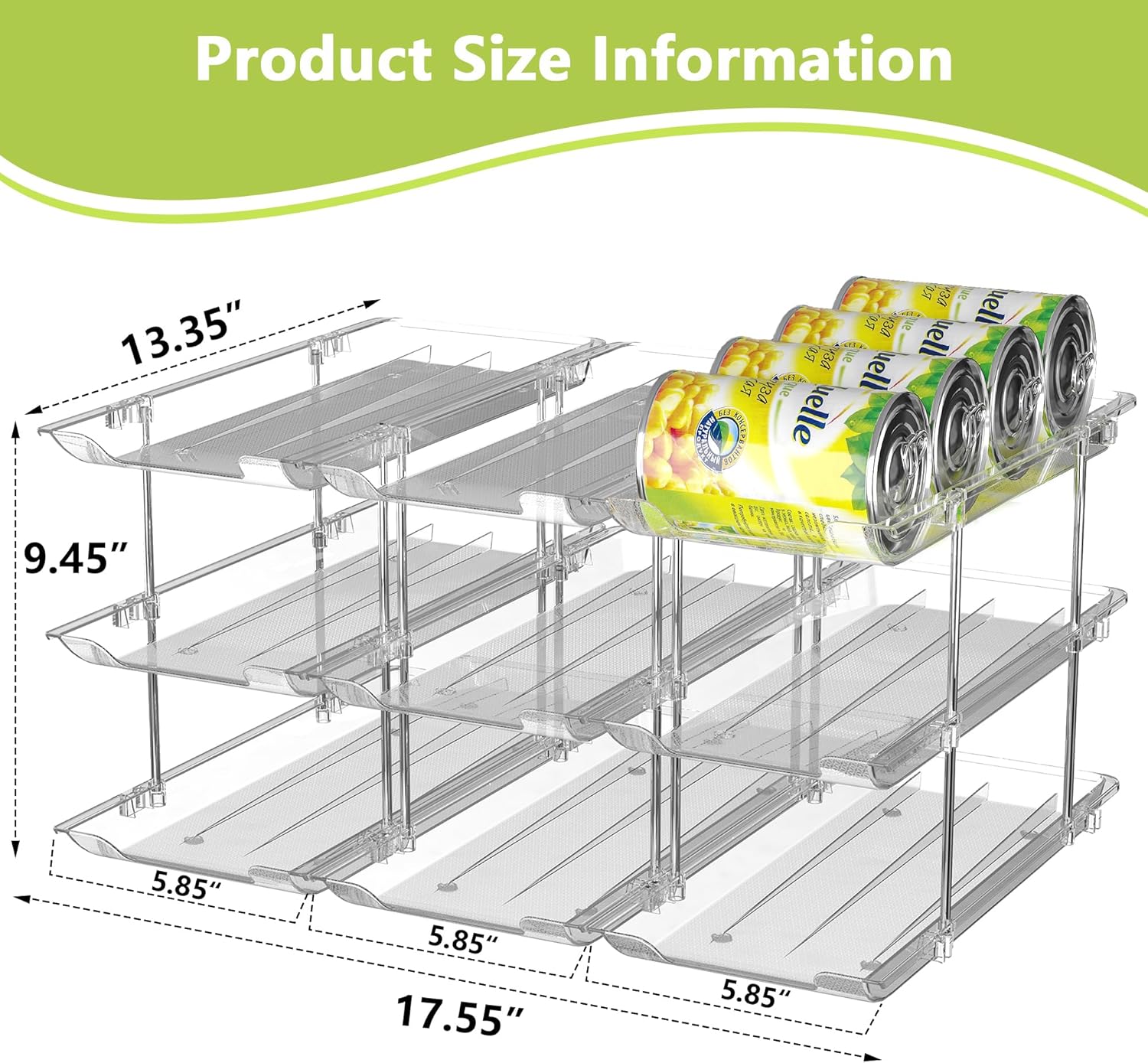- Suitable Size: Measuring 17.4'' x 13.5'' x 9.6'', this can food organizer for pantry holds up to 36 standard soda or beverage cans. Ideal for kitchens, pantries, and countertops. Please confirm can sizes before purchasing