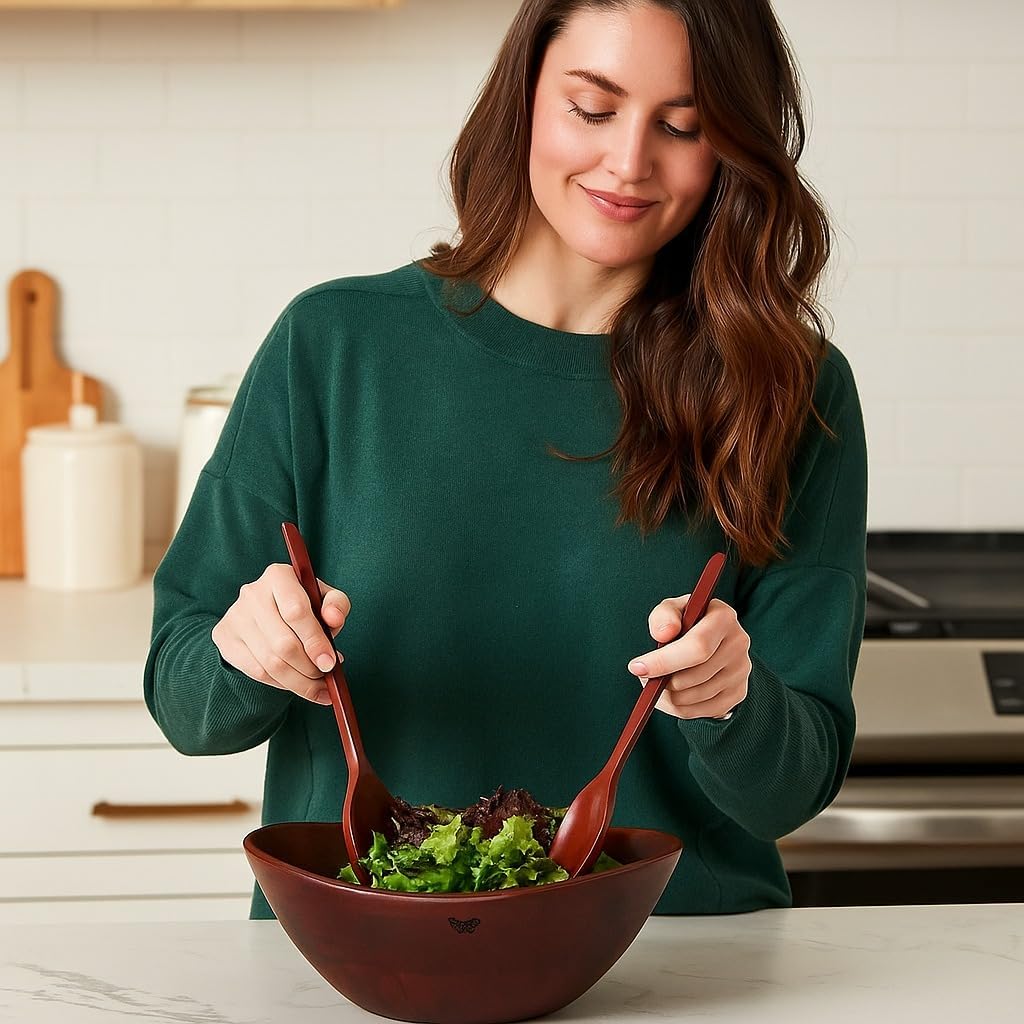 - ELEGANT BUTTERFLY COLLECTION: Inspired by natural water waves, this wood salad bowl set enhances any dining setup. Whether hosting a dinner party or enjoying a family meal, this handcrafted acacia salad bowl adds timeless charm to your table.