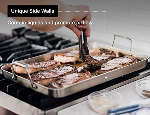 - All-in-One Helper: Misen's Stainless Steel Roasting Pan isn't just a pan—it's your kitchen buddy for baking, searing, and roasting. Keep things simple with this all-in-one wonder that works for all kinds of cooking.