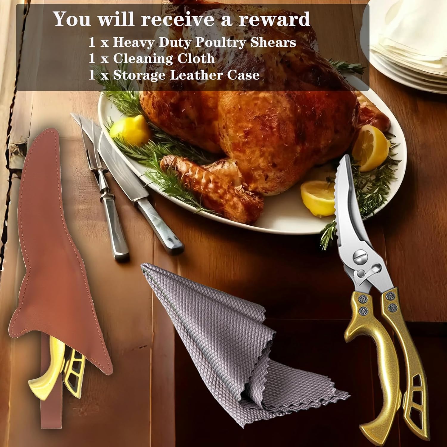 ANDONG Poultry Shears Heavy Duty Kitchen Shears with Serrated Edge, Kitchen Scissors spring loaded, Chicken Shears Heavy Duty Professional, Gold