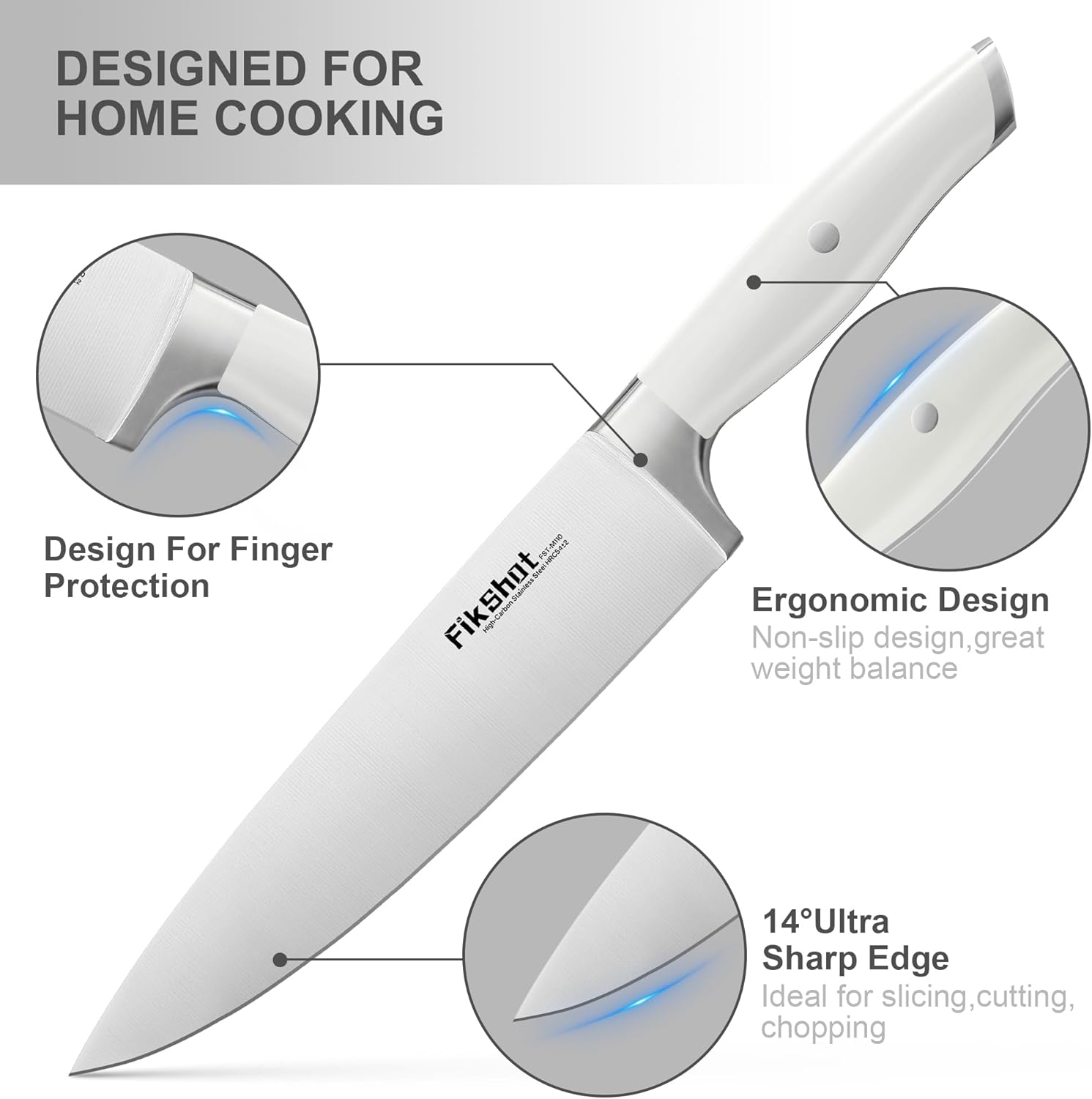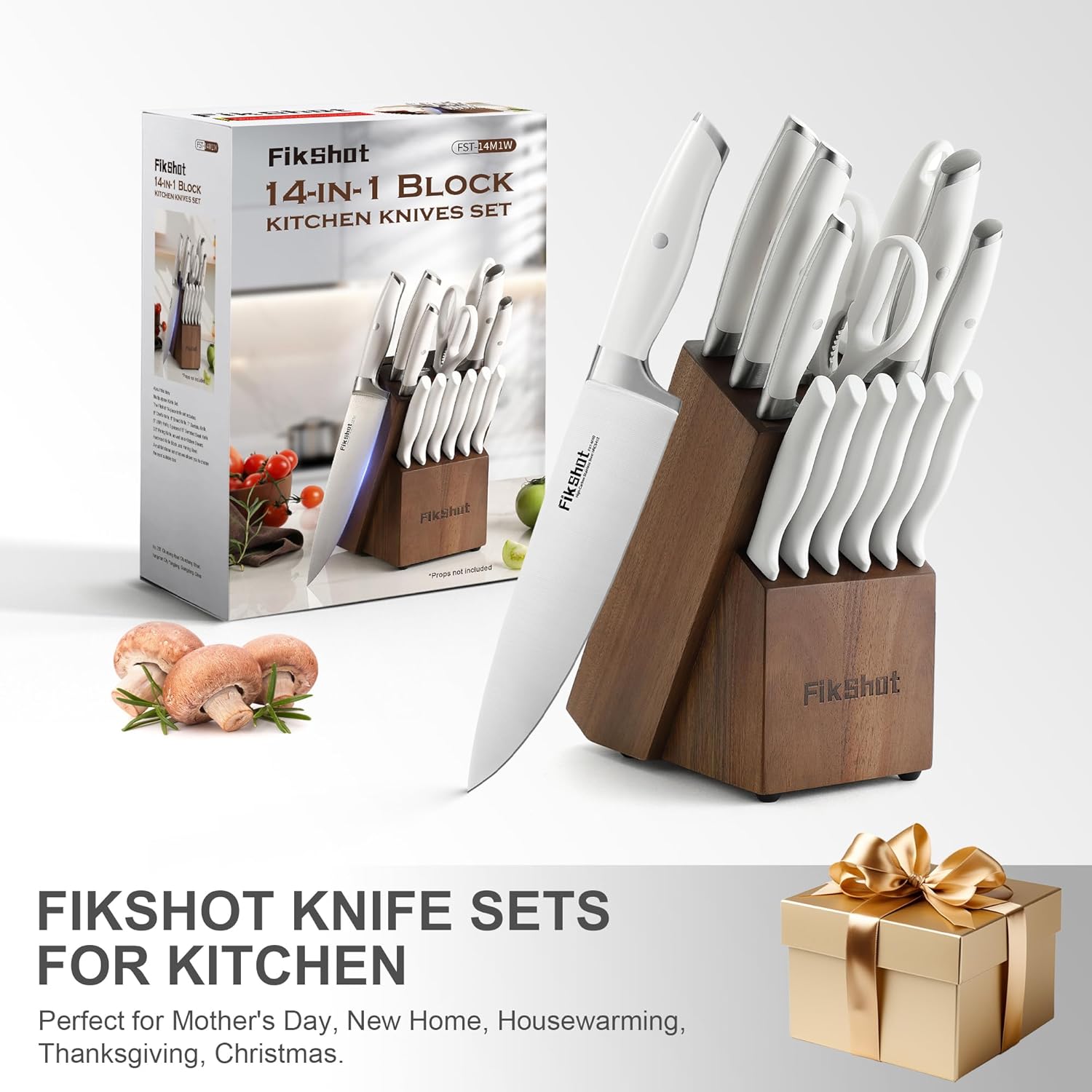 Knives Set for Kitchen, FIKSHOT 14PCS Kitchen Knife Set with Block, High Carbon Stainless Steel Full Tang Knife Sets Razor-Sharp Blade Professional Chef's Knife for Housewarming (WHITE)