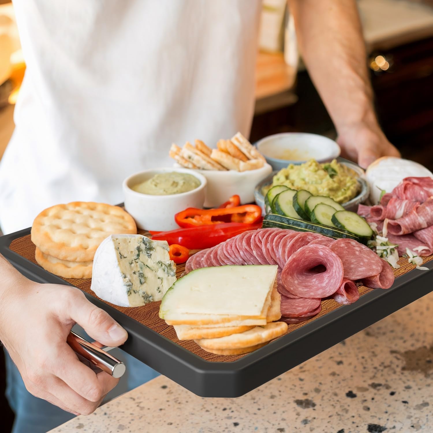 - Kitchen Prep and Serving: This cutting board is versatile for both chopping and serving. The stainless steel side is ideal for presenting meats, cheeses, and cold cuts, while the wood side adds a natural aesthetic for serving salads or appetizers. Its dual functionality makes it a valuable addition to any kitchen.