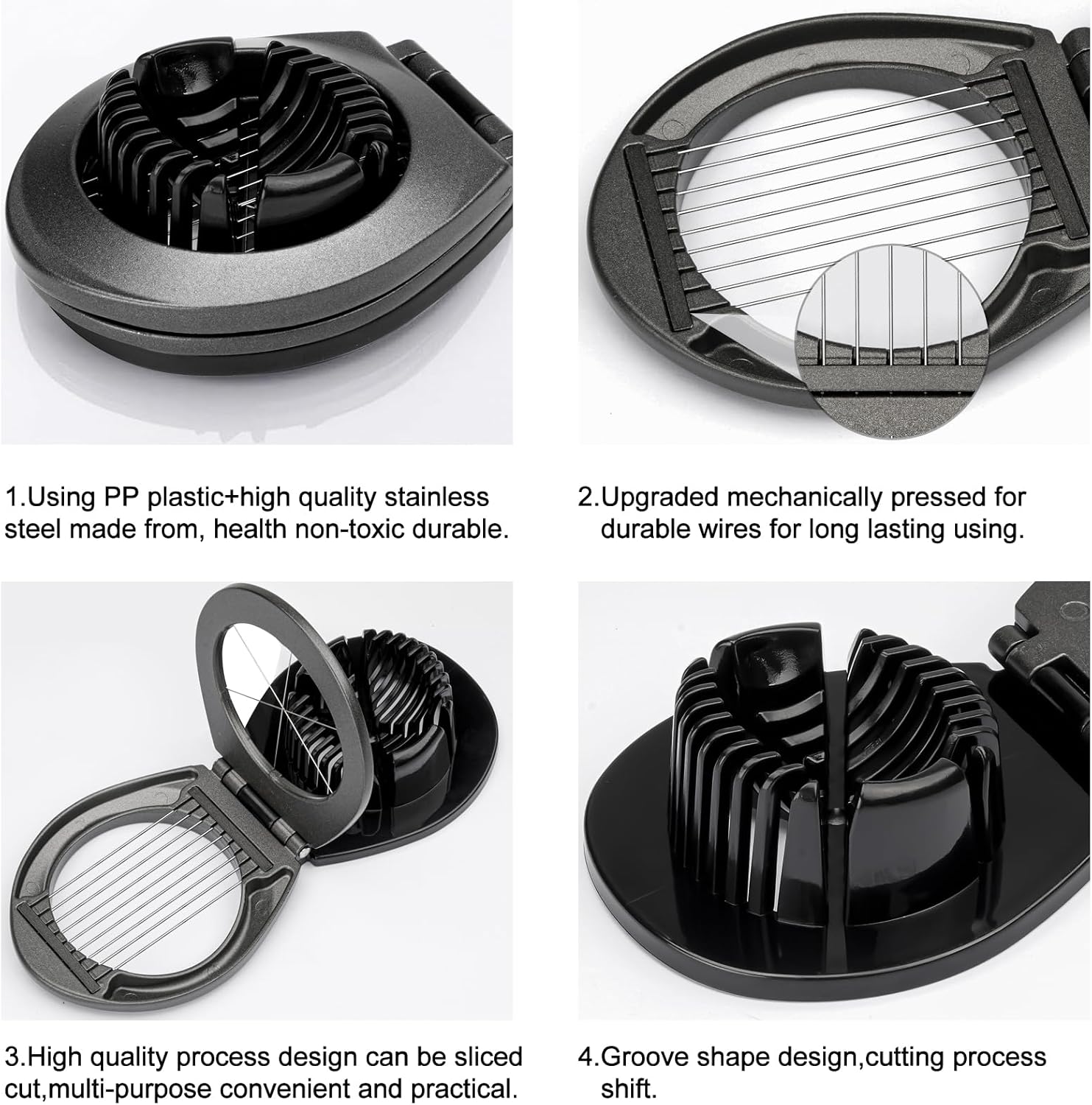 - Versatile Egg Slicer: This heavy-duty egg slicer not only works great on boiled eggs, but also can quickly and easily slice Kiwi, strawberry, cheese, butter, mushroom etc. It can save you time and energy and make different shapes for garnish or egg-based appetizers