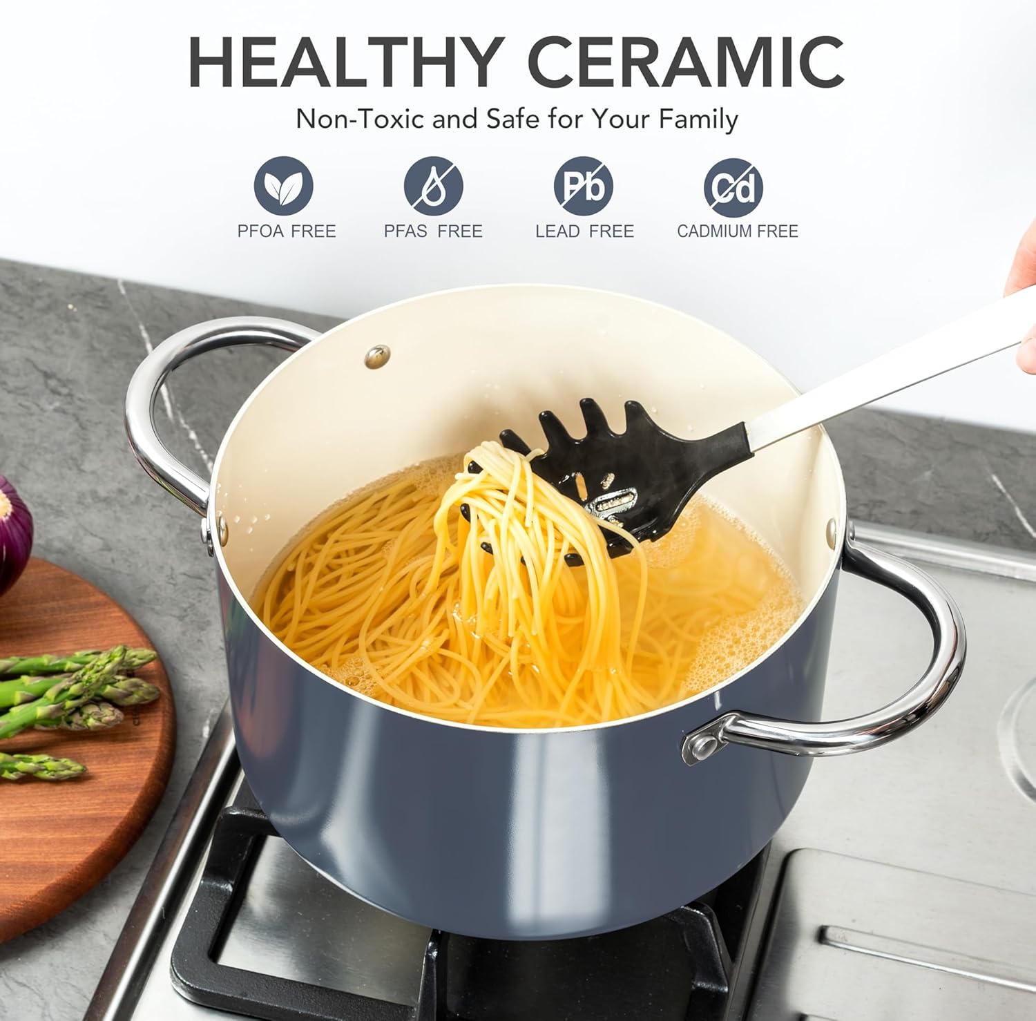 - Healthy & Non-Toxic Cooking: Our ceramic-coated stockpot is free of PFOA and PFOS, ensuring no harmful substances are released during cooking, allowing you to prepare meals with peace of mind for your family.