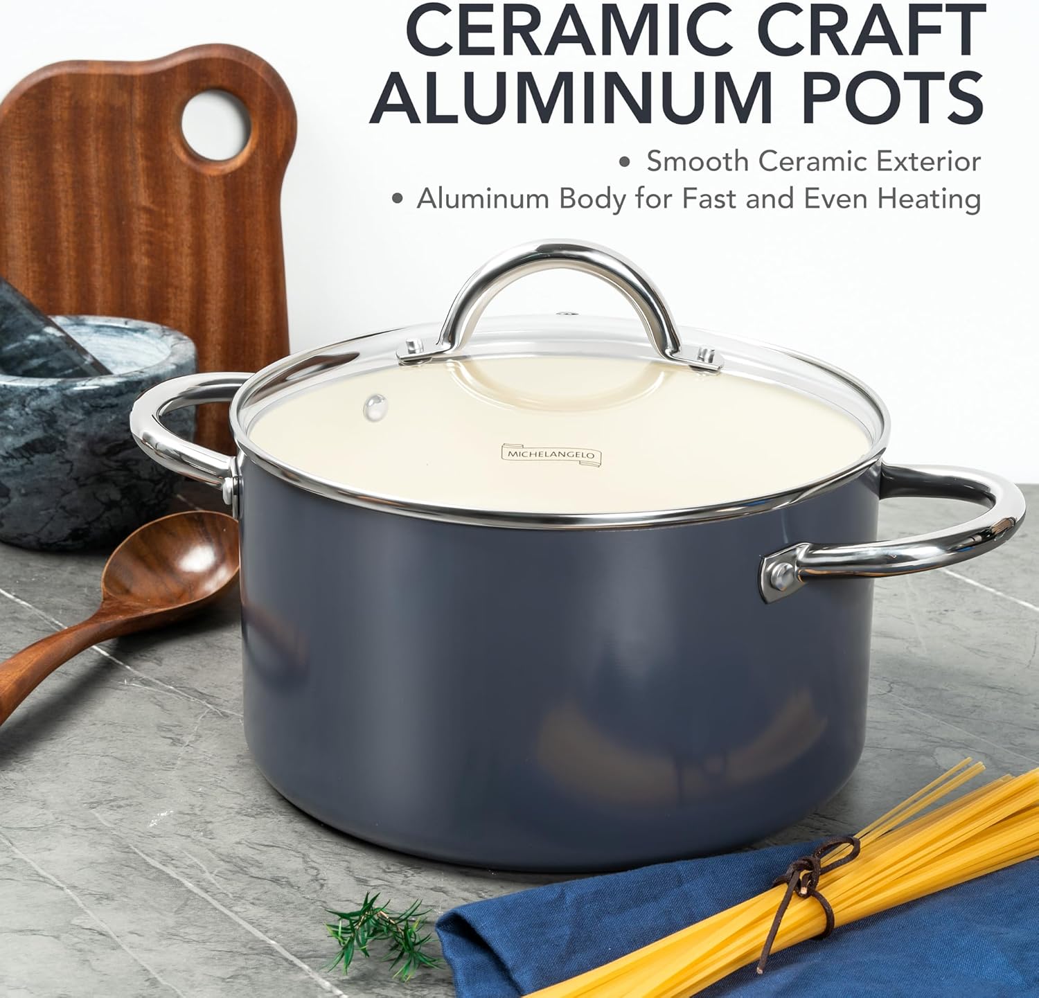 MICHELANGELO Stock Pot with Lid, 6 Quart Soup Pot with Ceramic Coating, Nonstick Ceramic Cooking Pot, Induction Compatible Stockpot - 6QT, Haze blue