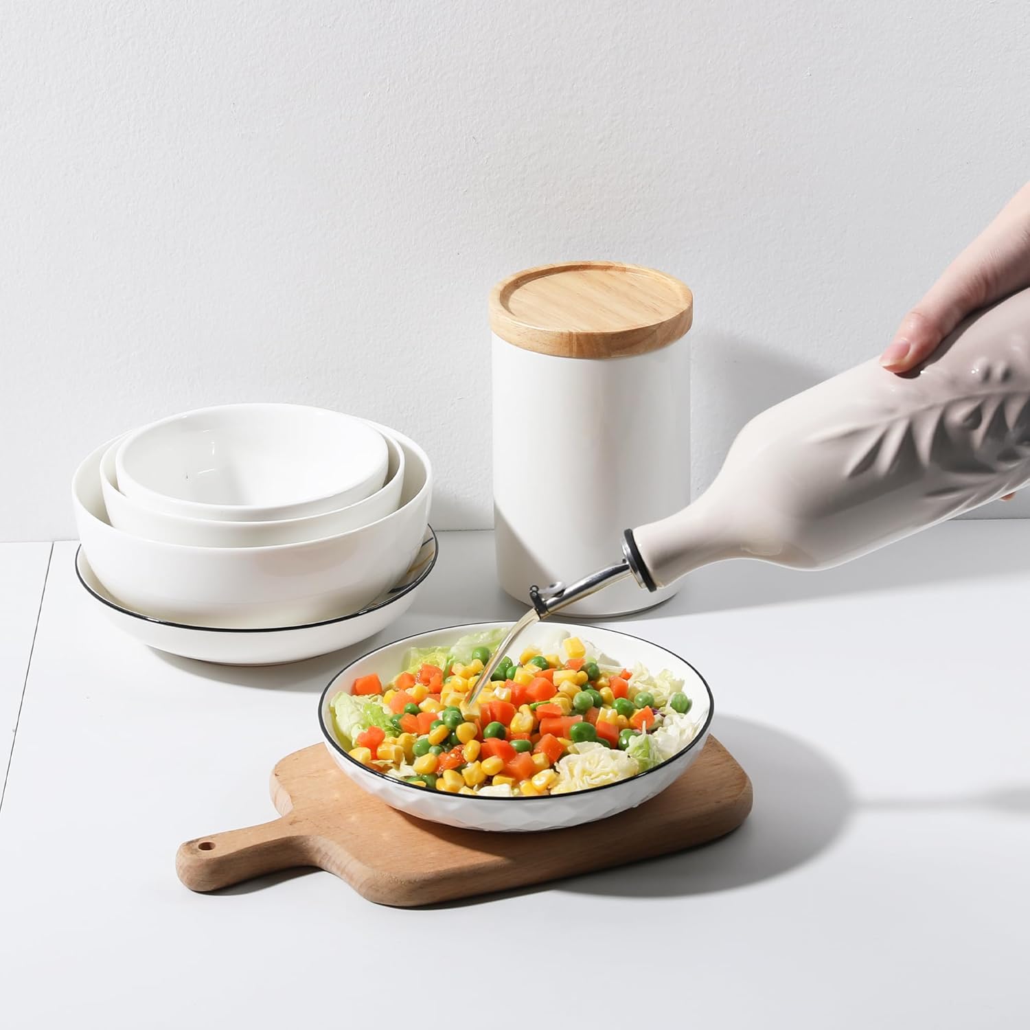 - Modern Relief Design -The bottle body is embossed with olive leaves, which looks elegant and delicate.Precision dumping, bottle body design has a unique spout, can perfectly pour out the oil and vinegar will not leak, the correct control of the use of oil.