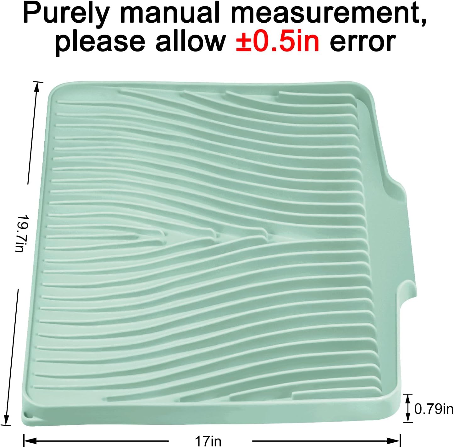 - Quick Drying Mat: TIKNIK dish drying mat measures 19.7" x 17", where washed dishes can be placed for air drying. The folding, raised and innovative design of the quick dry dish mat allows air to circulate under the dishes,and features unique diagonal ridges to easily remove moisture, and a specially designed rim that lets water drain directly into the sink. This keeps your countertops dry and clean, and says goodbye to wet countertops.