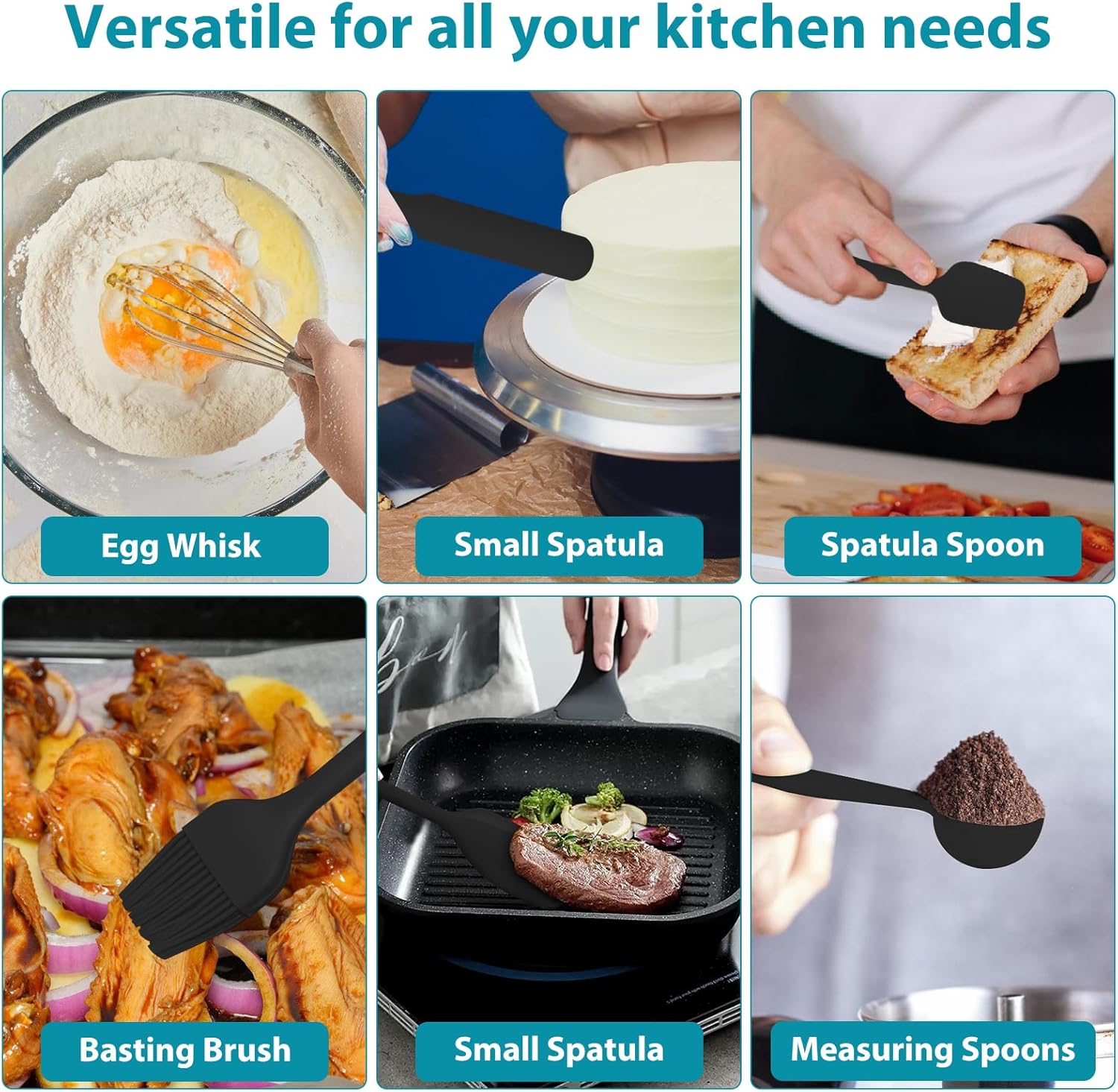 - Complete 14-Piece Accessory Set: This versatile set includes 6 mixing bowls in sizes 1.1QT, 1.5QT, 2.1QT, 3.5QT, 4QT, and 5QT, plus 3 grater attachments, 6 measuring spoons, a basting brush, small spatula, tongs, spreader spatula, and egg whisk—everything you need for mixing, prepping, serving, and storage.
