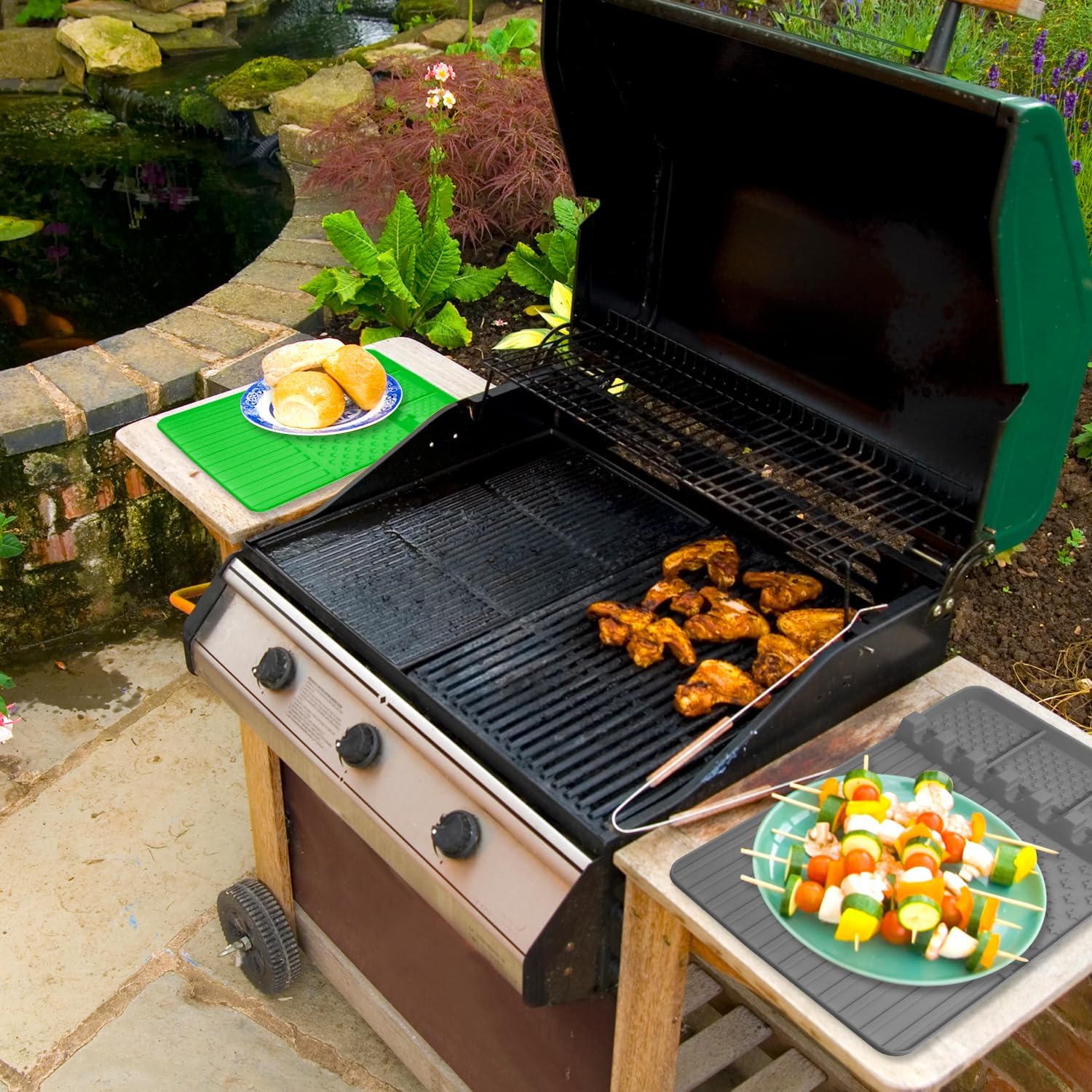 - It can use for grill BBQ caddy seasoning jars holder and ladle spoon multiple utensils holderour. Silicone mat helps protect your grill surface from scratches, stains, and heat damage, promoting optimal grilling conditions and preserving the quality of your Blackstone grill。Aslo Suitable for kitchen, stovetop,cooking and countertop to keep clean. Never worry about a staining a countertop with a dirty spatula again!