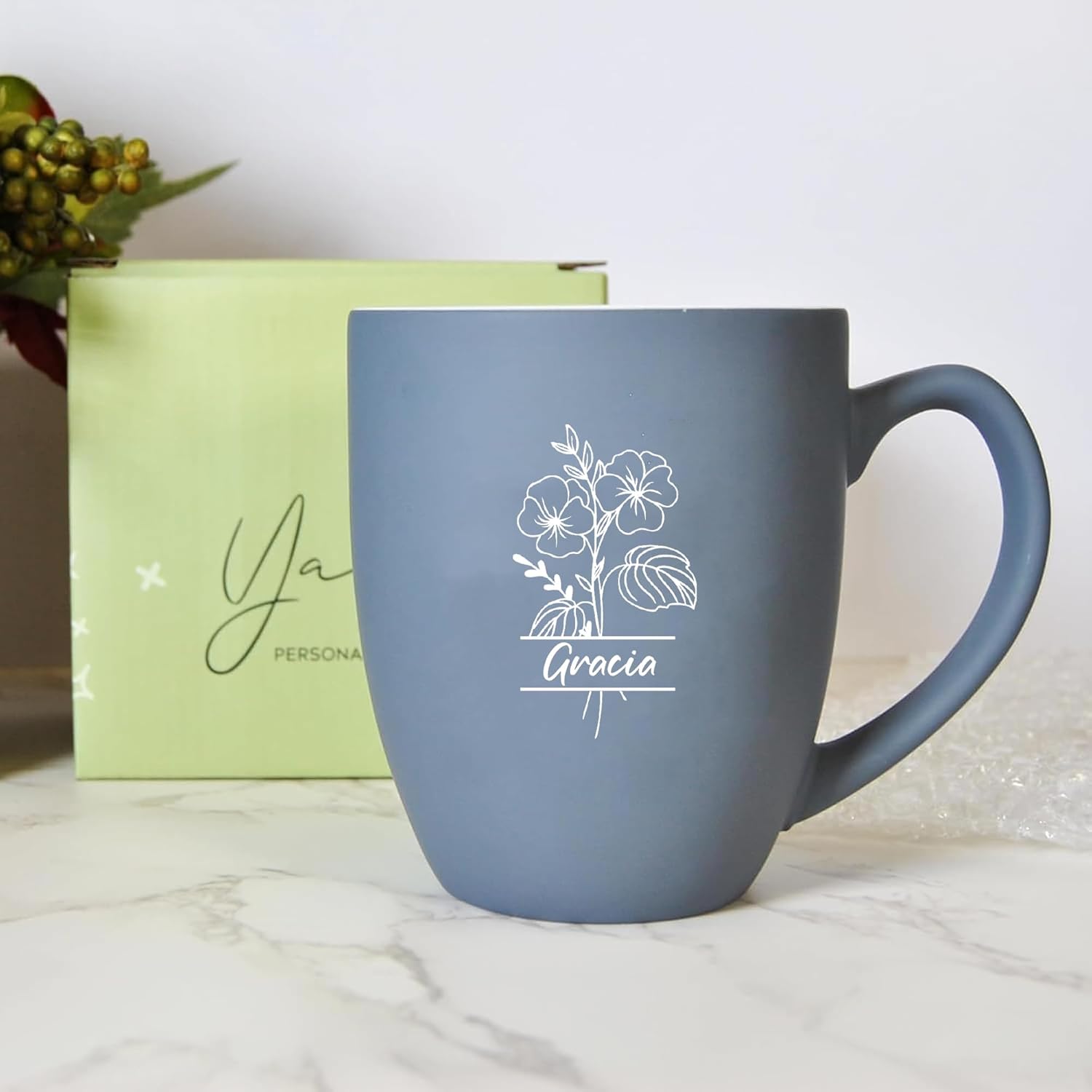 - Personalized Coffee Mug with Birth Flower: Our Personalized Coffee Mug is custom-designed with your choice of birth flower, name, and text, making it a one-of-a-kind gift for your loved ones. Whether it’s for Grandma, Mom, Wife, Sister, or any special woman in your life, this mug adds a personal and heartfelt touch to their morning coffee or tea routine.