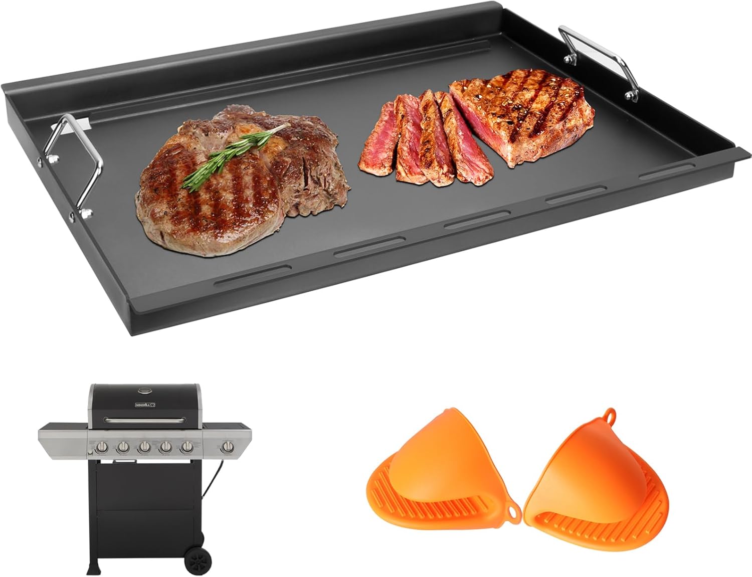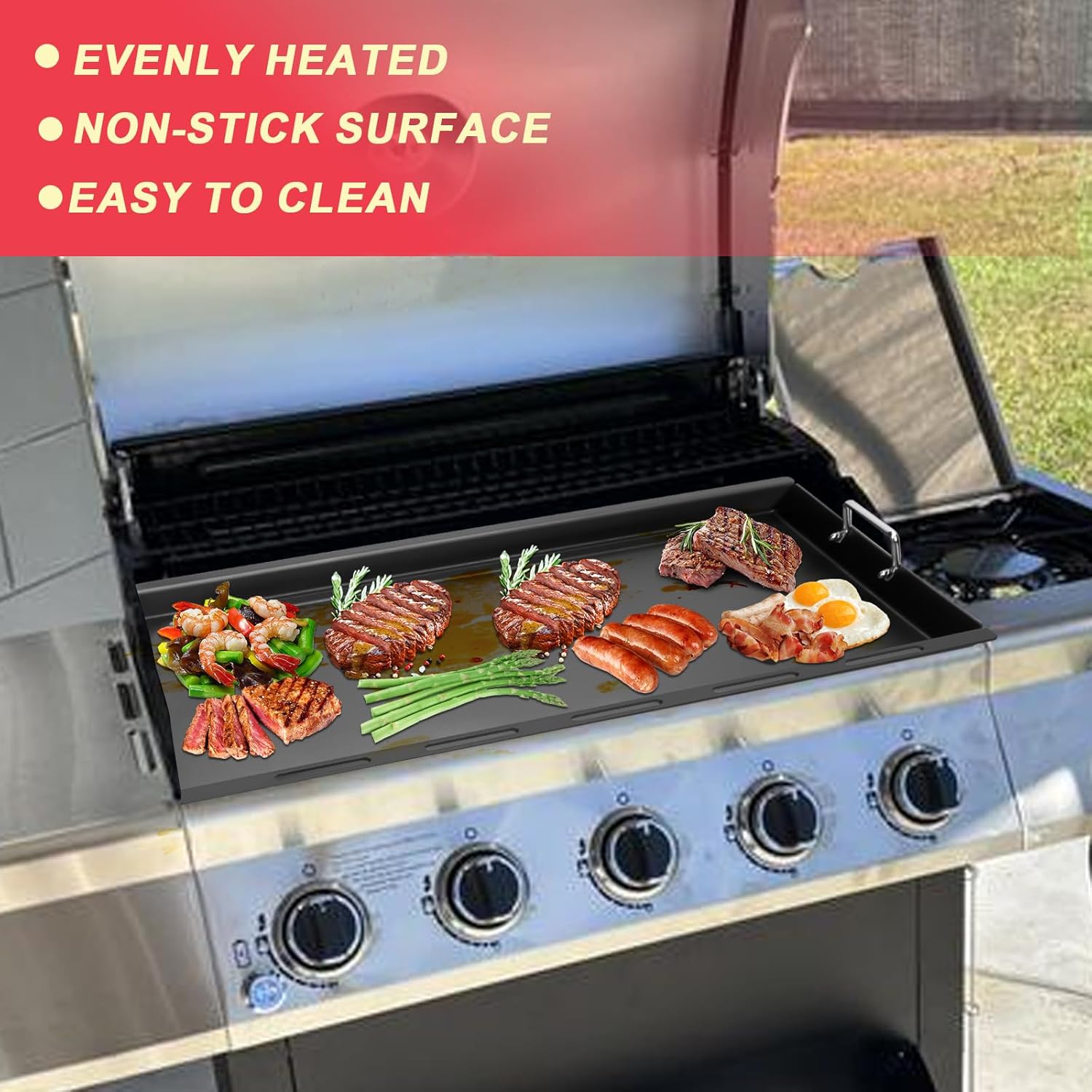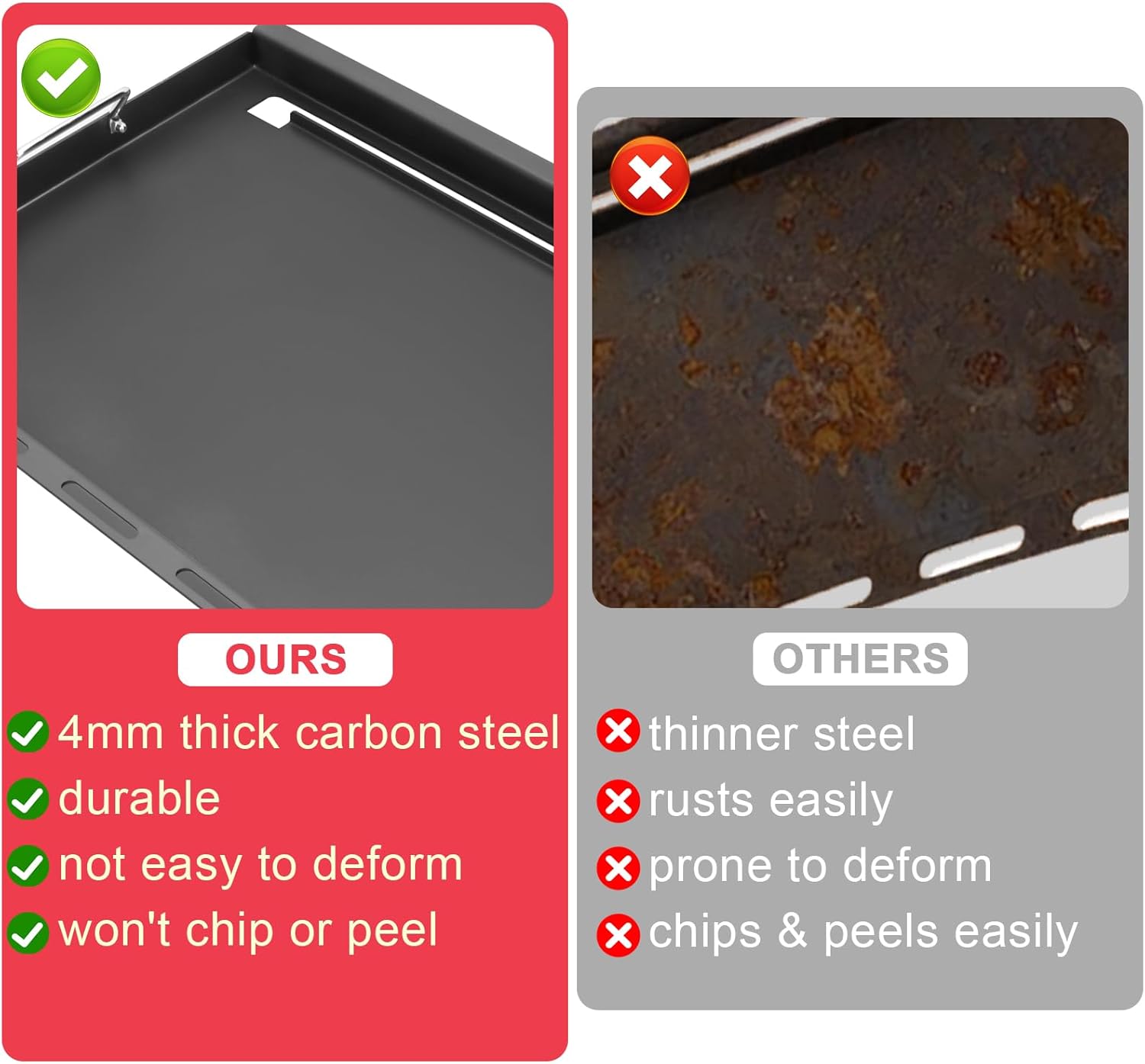 - Built to Last & Cook Like a Pro: Why settle for warped, uneven griddles? Crafted from premium 4mm carbon steel, this heavy-duty plate distributes heat evenly and handles high-heat searing, pancakes, or veggies without warping. Its rugged design resists rust and scratches, unlike thin competitors.Whether you're flipping burgers or stir-frying, this flat griddle top plate for nexgrill replacement parts 5&4 burner griddle insert outperforms Cast iron with faster preheating
