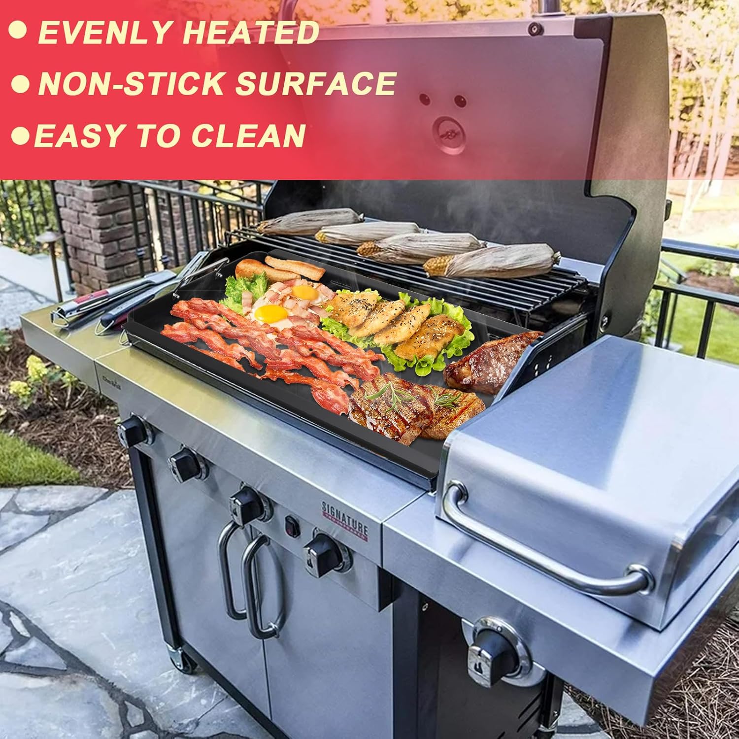 - Versatile BBQ Game-Changer: Bored of basic grilling? Turn your grill into a diner-style flat-top! Sear steaks, cook breakfast spreads, or fry crispy bacon—all on one surface. Unlike small griddle pans, this full-size insert gives you room to cook for crowds. Perfect for tailgates, backyard parties, or weeknight dinners. Love smoky flavors? Keep your grill grates for charring and swap in this griddle for endless cooking options!