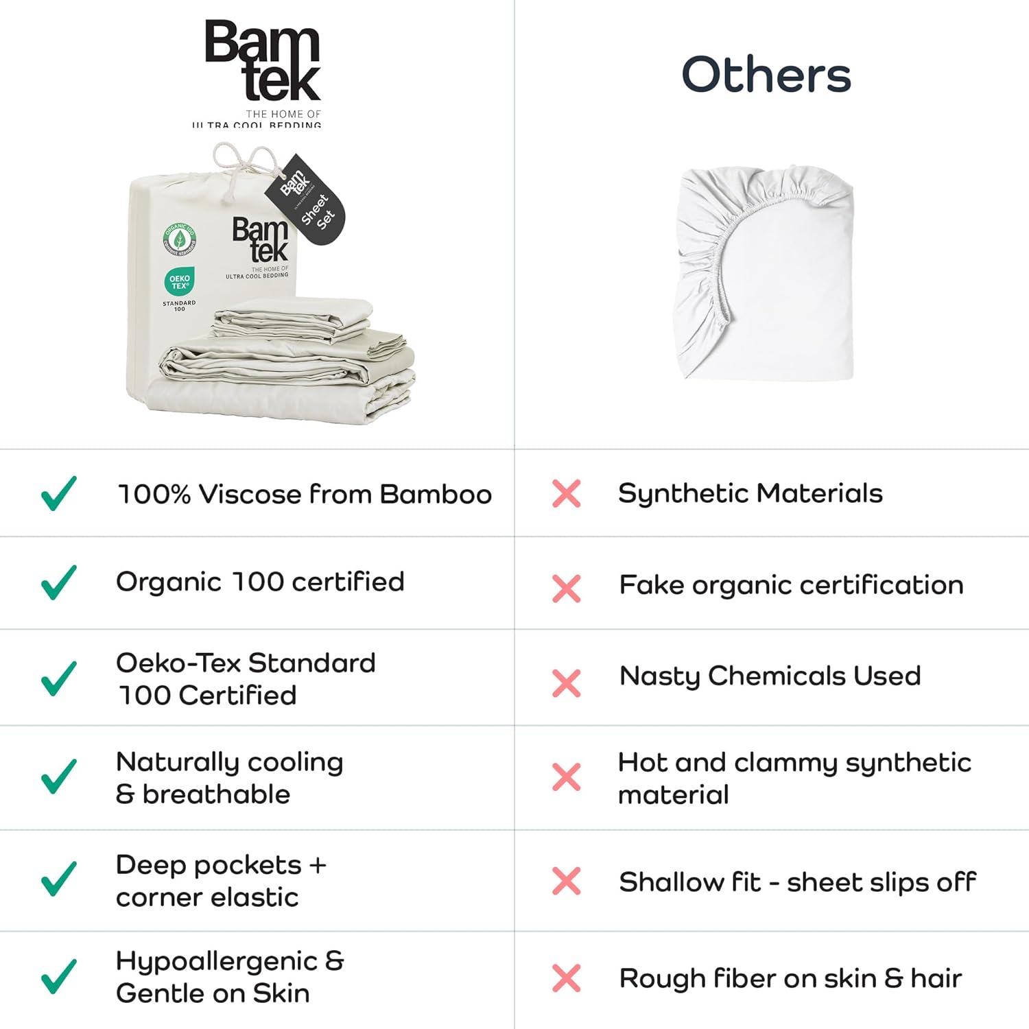 - Because You Deserve Better: Say goodbye to harsh chemicals, Bamtek 100% Viscose Bamboo Sheets are organically certified & Oeko Tex standard 100 certified - skin friendly, a hypoallergenic bedding and those who value pure natural comfort.