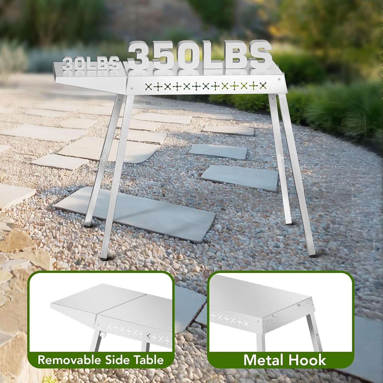 - Multiple Uses: The stainless steel folding table is widely used, not only can be used as a BBQ table, but also can work as a meal preparation table, computer table, laptop bed table, pizza table, flower stand, etc. It can also be used as a birthday gift or Christmas gift for barbecue lovers.