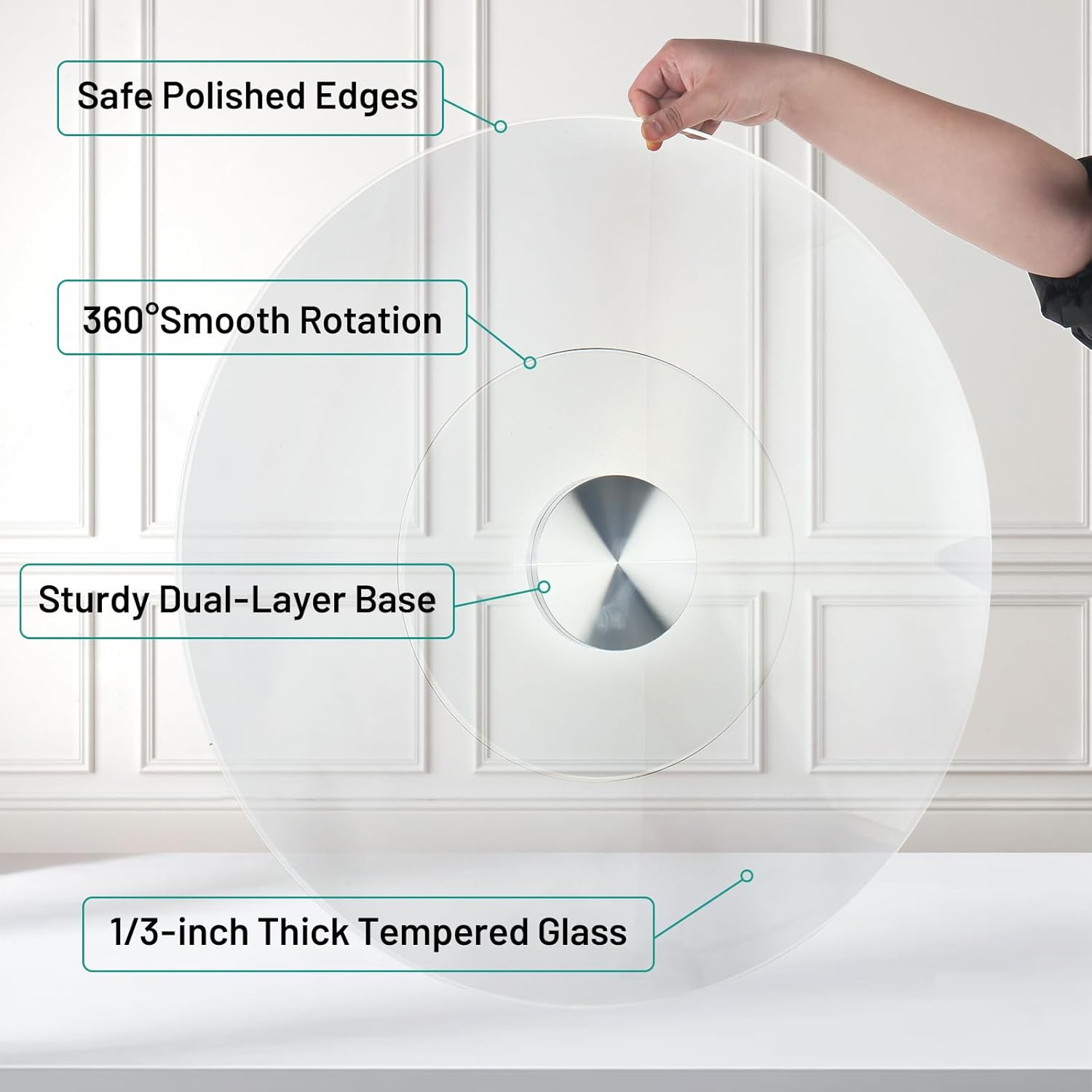 30-Inch Lazy Susan Turntable for Dining Table, Tempered Glass, 360° Rotation, Anti-Tip Design with 6 Rotating Wheels, Perfect for Parties, Weddings, and Family Dinners (30 inch)