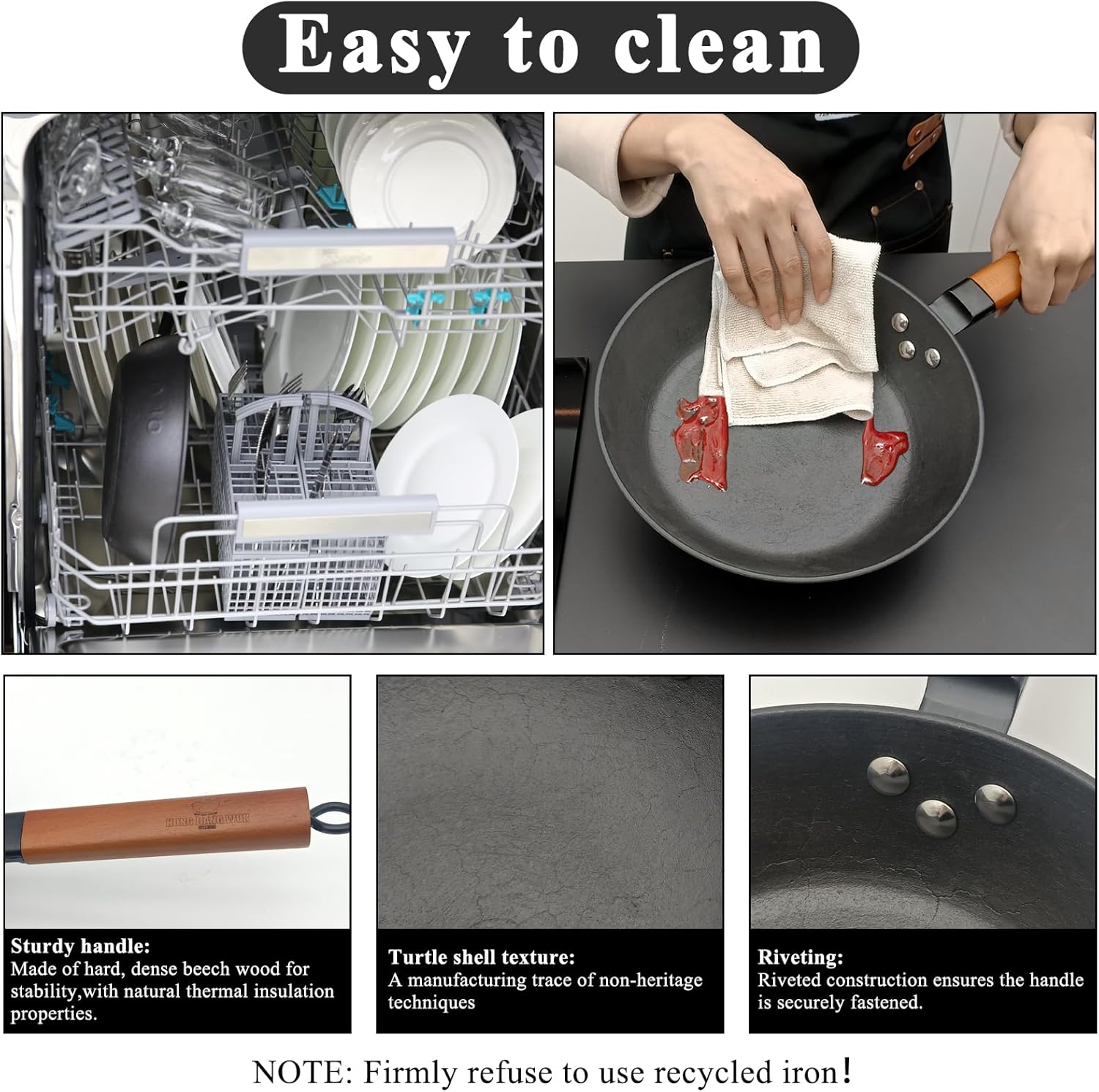 - Physical Non-stick: The unique clay-molded iron die-casting process creates a unique tortoise pattern on the surface of the skillet, which naturally hides the oil and grease, and over time creates a firmer film of oil, enhancing the non-stick performance of the pan while extending the life of the skillet