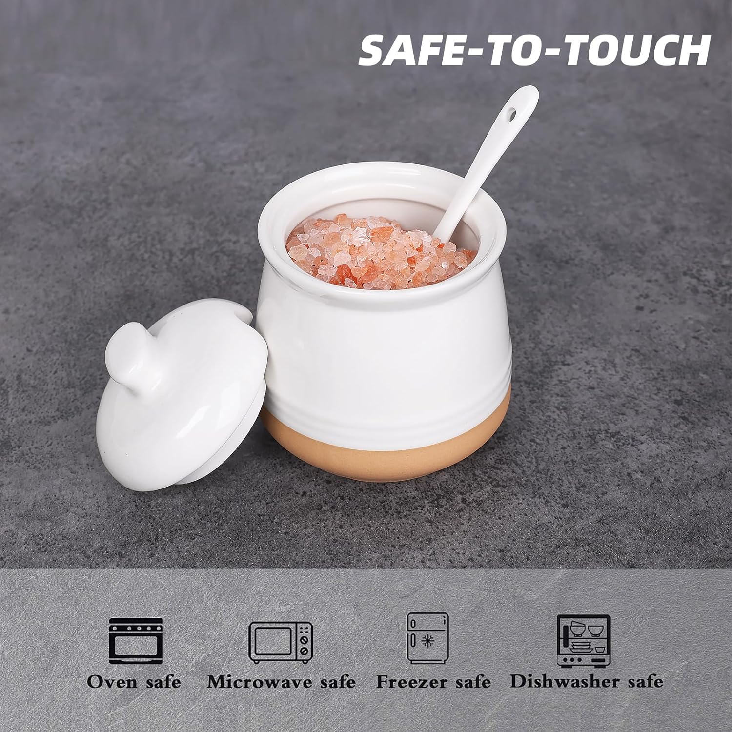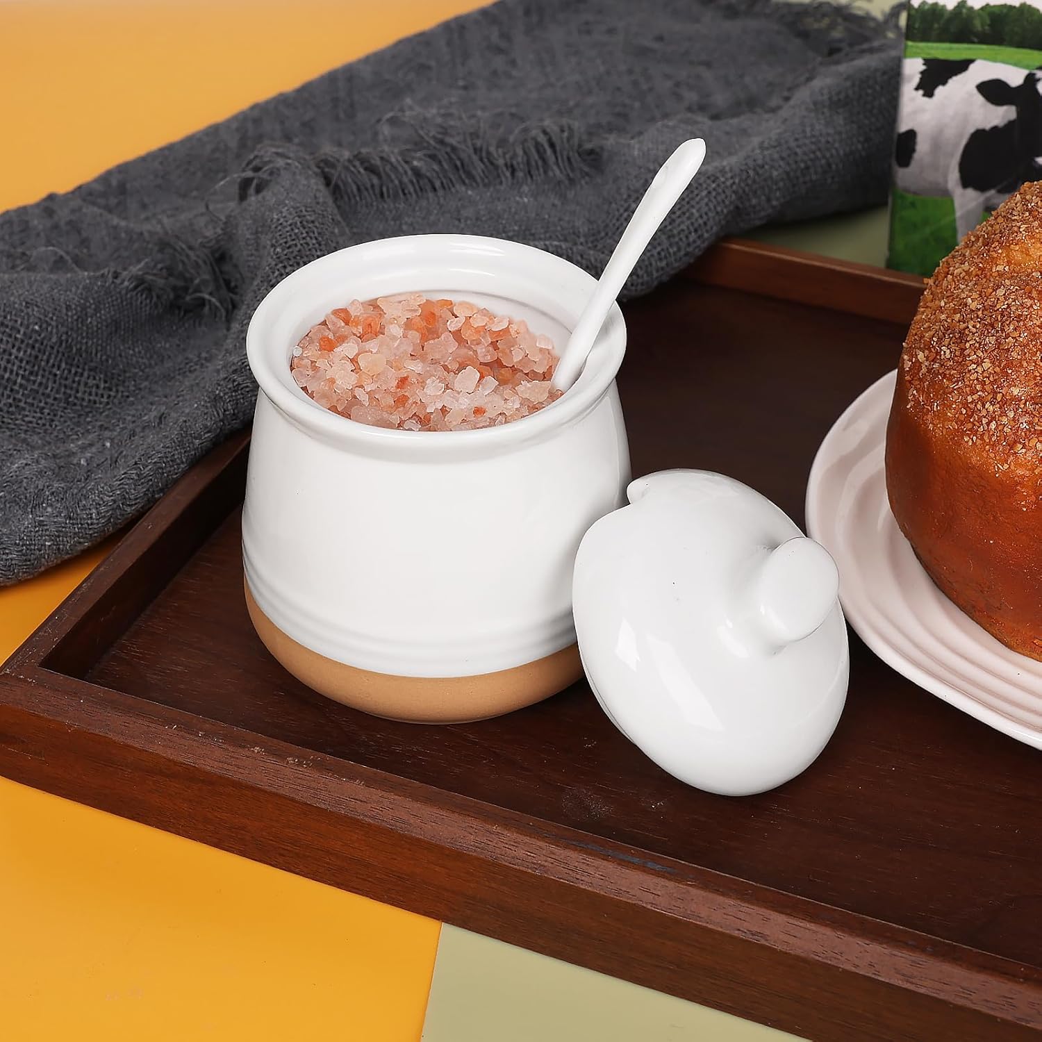 - Convenient Lid and Spoon Included: The set includes a well-fitted lid that keeps sugar protected from moisture, and contaminants. Additionally, a matching ceramic spoon is included, which fits neatly into the built-in slot for easy access without losing or misplacing the spoon