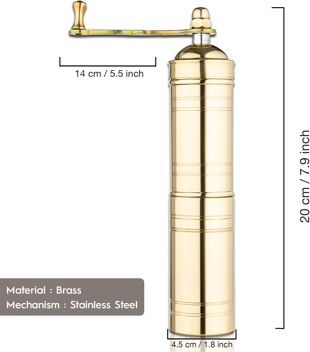 Decorative Handmade Turkish Black Pepper & Coffee Grinder, Refillable Turkish Spice Mill with Adjustable Coarseness, Manual Coffee Mill with Handle, Coffee Grinder Metal with Hand Crank