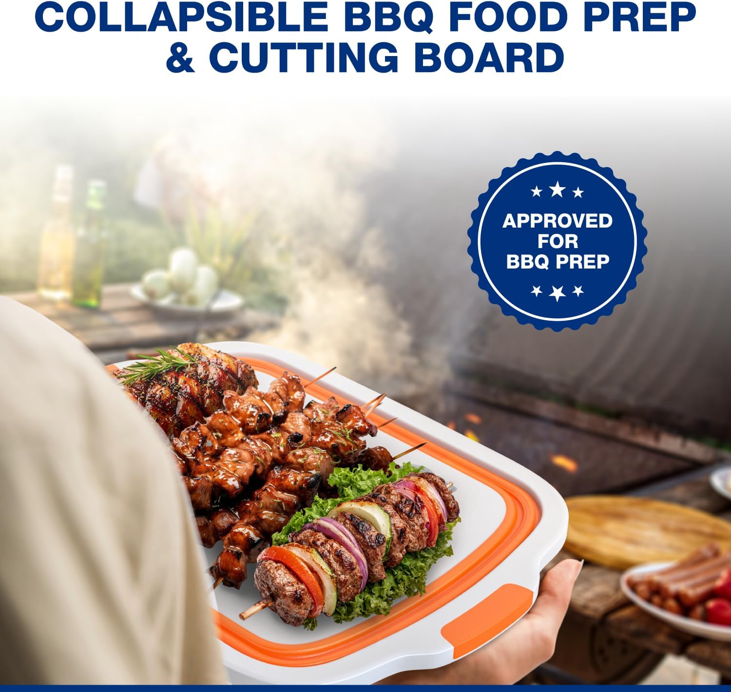 - BBQ Marinate, Drain & Prep – Made from food-safe materials, this tub lets you marinate meats mess-free, drain excess liquids with the built-in strainer, and prep food on the sturdy cutting board. The collapsible design saves space, and it's easy to carry for effortless grilling.