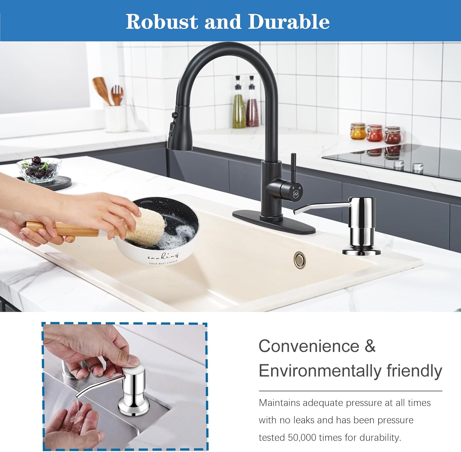 - Easy Refill : Bid adieu to the hassle of frequent refills by eschewing the need to delve beneath the sink. Our dish soap dispenser boasts a conduit that seamlessly connects to a capacious dish soap container, rendering the refill process an infrequent necessity.