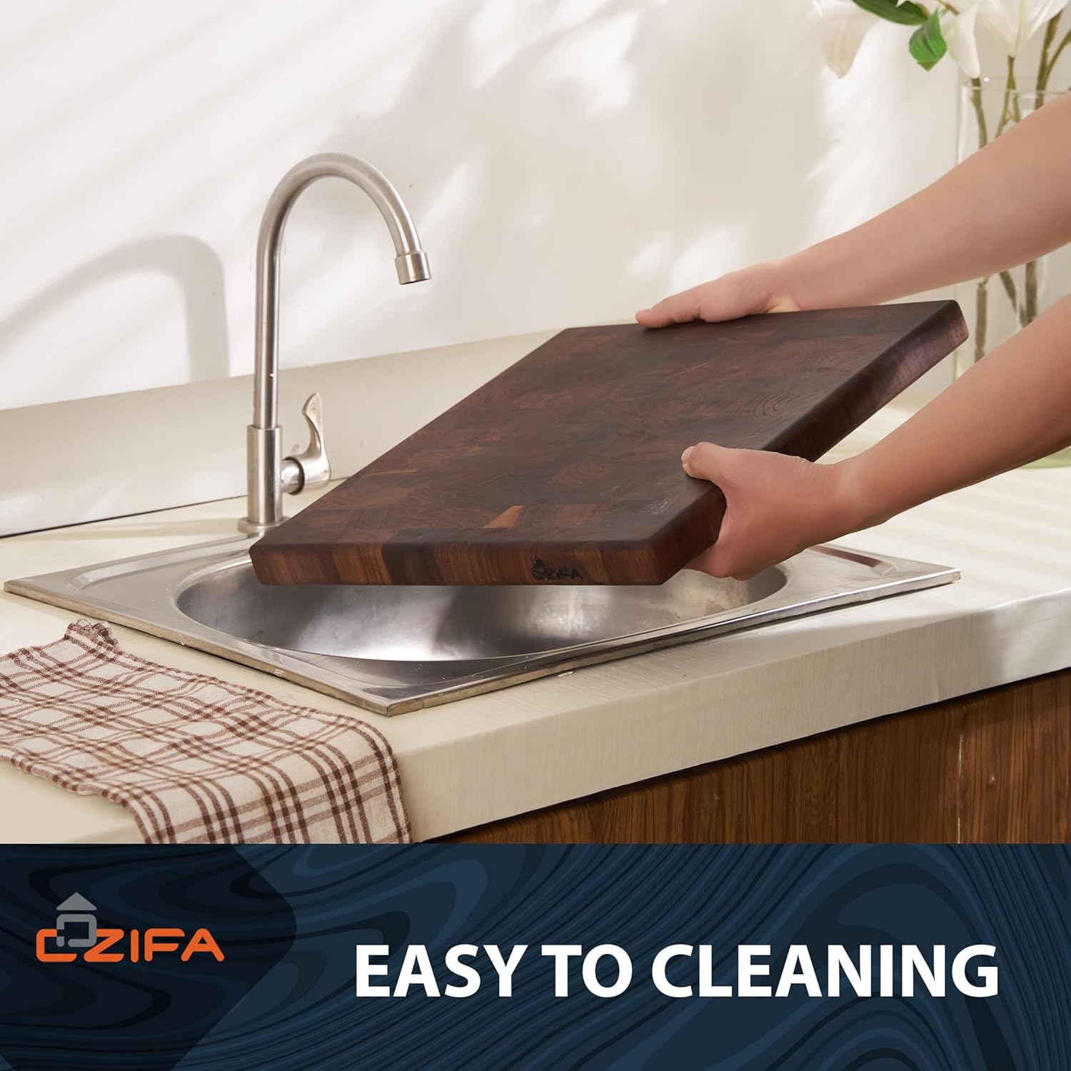 - [CARE AND MAINTENANCE]: Tending to this thick cutting board made of walnut wood is quite simple. With correct cleansing (hand wash your board only) and consistent oiling (at least 1-2 times per month or more), it's bound to outlast most kitchen items, presenting itself as a sound investment for culinary lovers.