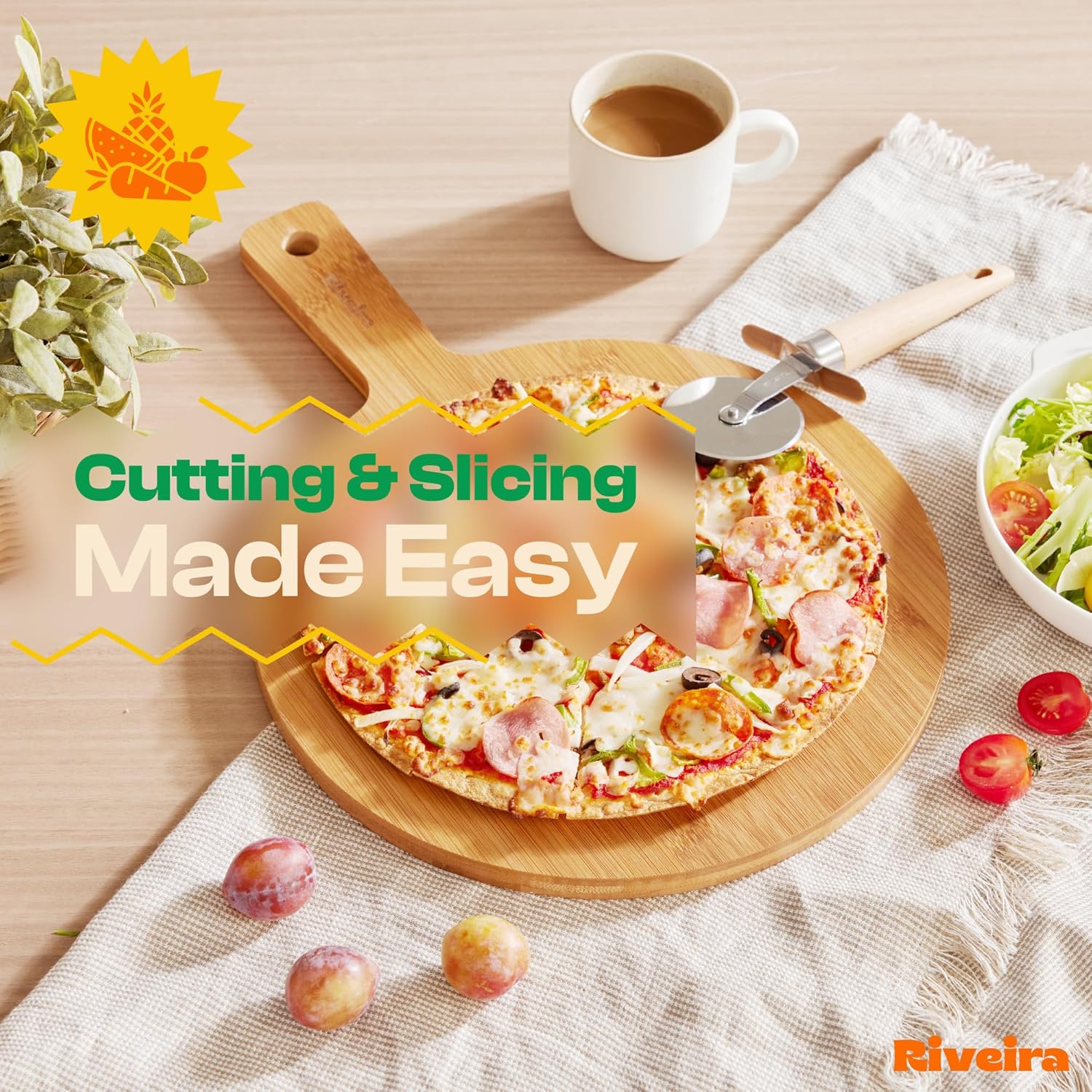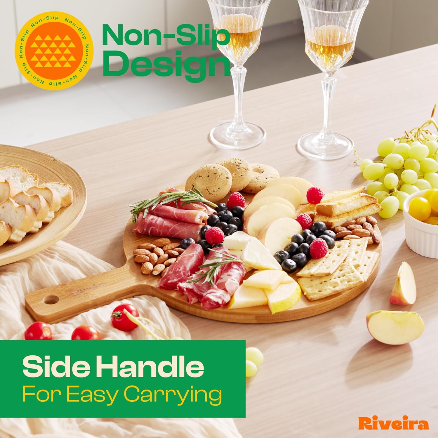 - Premium Crafted Bamboo — Take a detour from traditional kitchen aesthetics with this brown bamboo wood board crafted from 100% natural bamboo. Beyond being an unconventional and eco-friendly choice, the chopping board wood proudly showcases the environment friendly and organic bamboo. This wood cutting boards for kitchen counter adds an unexpected touch of confidence and style to your once-orderly culinary space. Riviera's wooden chopping boards for kitchen will be there for many years to come.