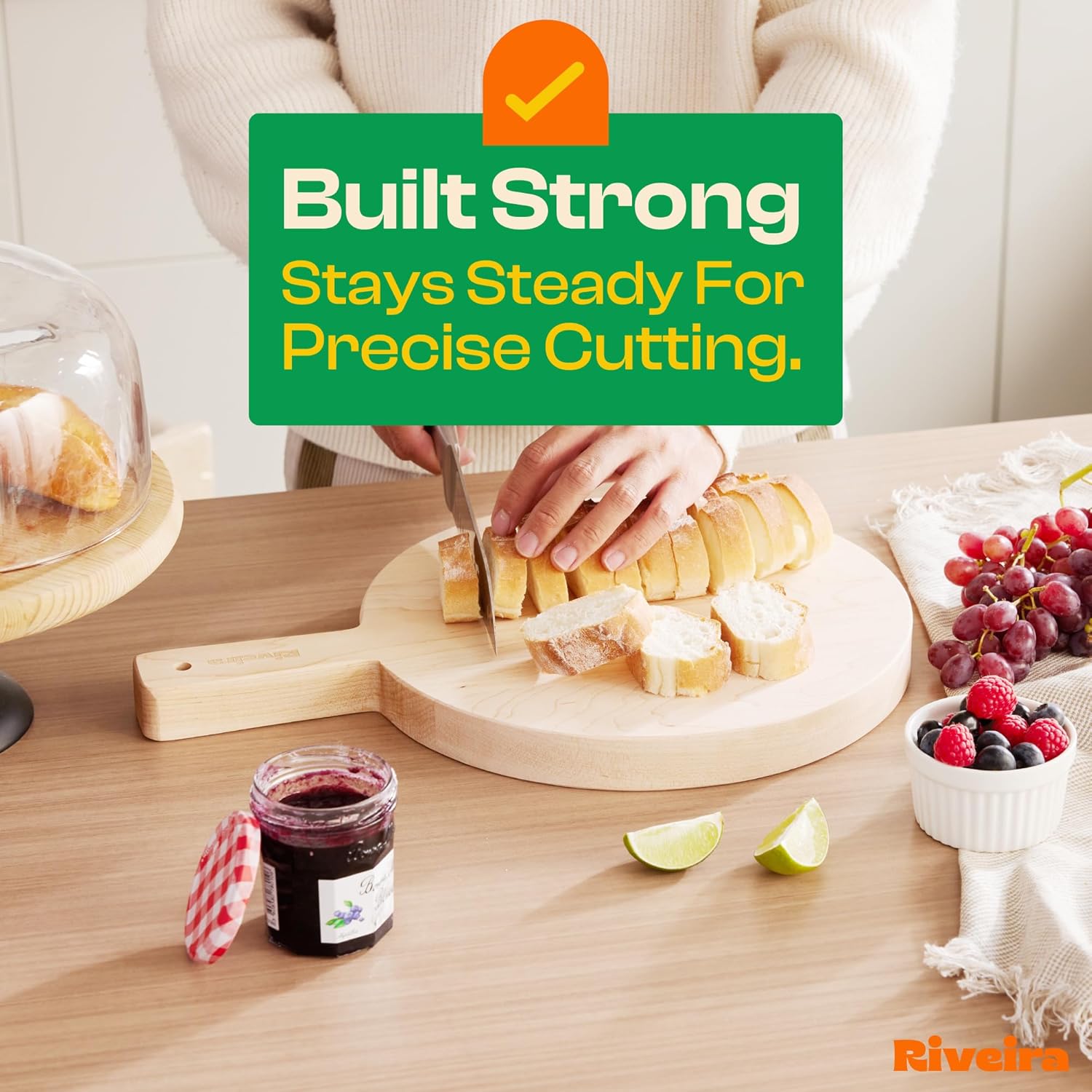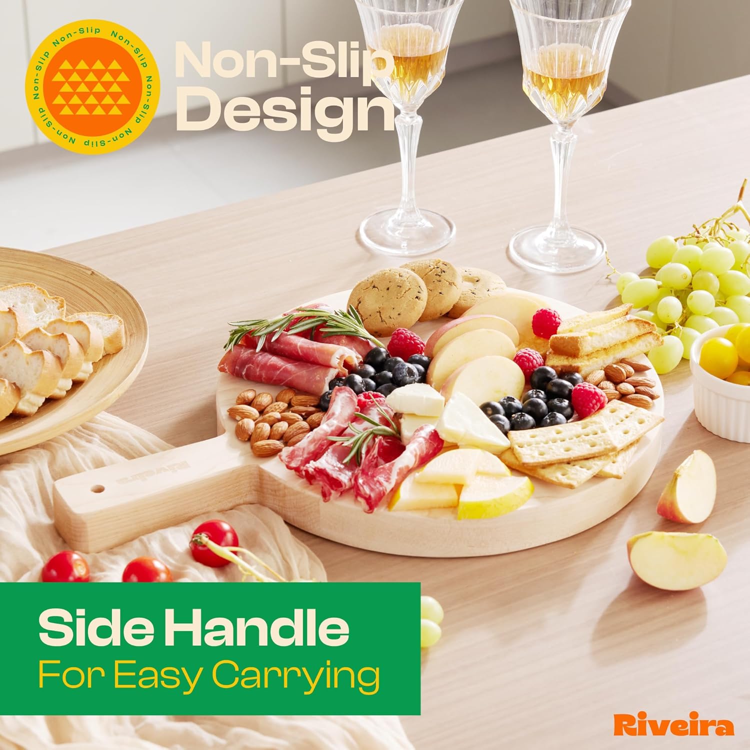 - Premium Crafted Maple — Take a detour from traditional kitchen aesthetics with this maple wood board crafted from 100% natural maple. Beyond being an unconventional and eco-friendly choice, the chopping board wood proudly showcases the environment friendly and organic maple. This wood cutting boards for kitchen counter adds an unexpected touch of confidence and style to your once-orderly culinary space. Riviera's wooden chopping boards for kitchen will be there for you for many years to come.