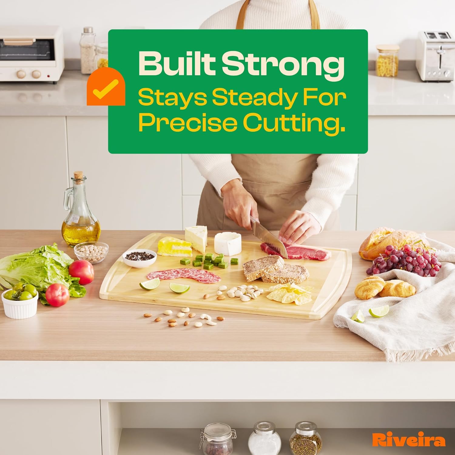 Riveira Two Tone Bamboo Wood Cutting Board – Gourmet Bamboo Grandeur: 24 x 18 Wooden Cutting Board – Wooden Cutting Boards For Kitchen Decorative – Innovative Juice Grooves Wooden Chopping Board