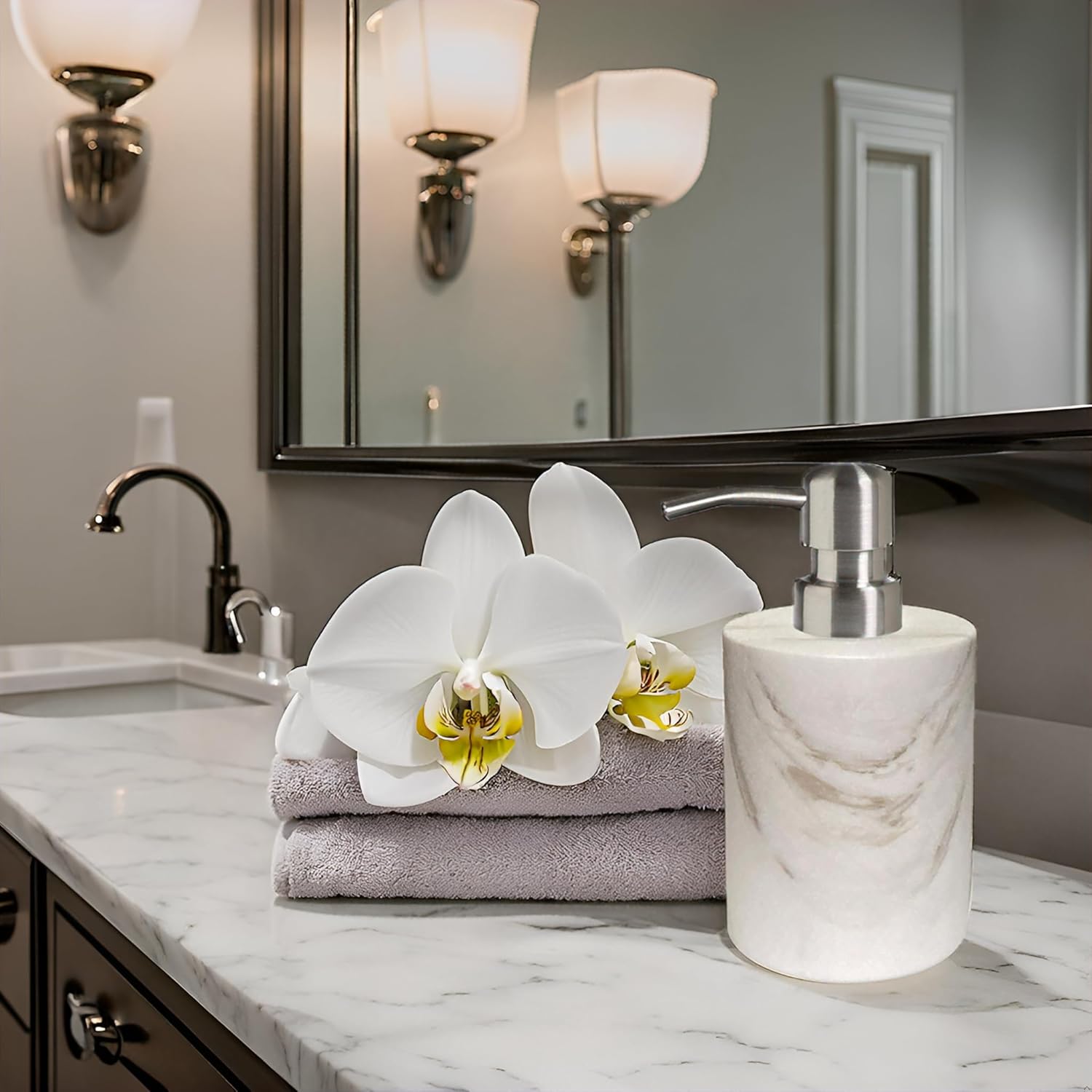Marble Soap Dispenser, soap and Lotion Dispenser Bathroom, with Rust Proof Stainless Steel Pump Refillable for Kitchen Bathroom Countertop-Hand Lotion and Liquid Soap Dispenser-White