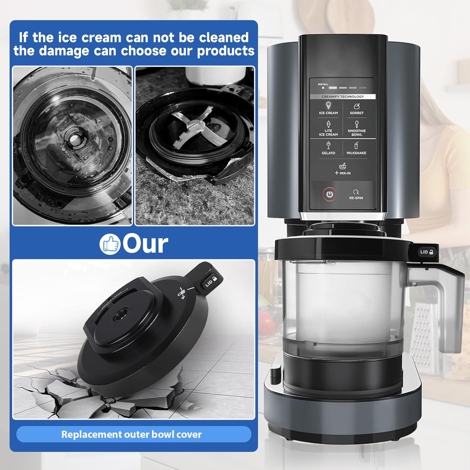 Outer Bowl Lid for NC301 Ice Cream Maker,Reusable Creami Replacement Lid, Creami Accessories Compatible with NC299AMZ/NC301/NC300/NC201/NC101 Series (NO Paddle)