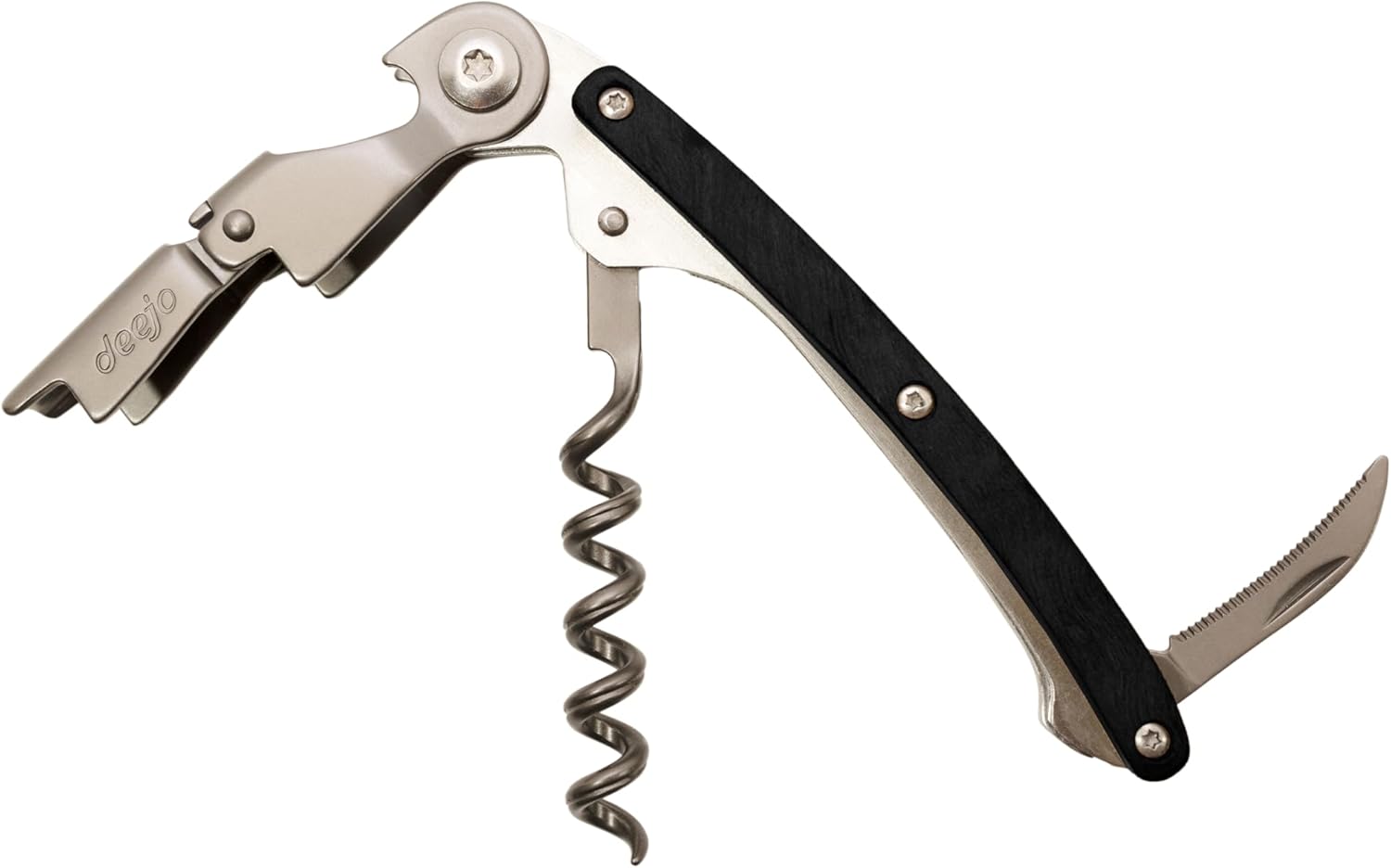 Waiters Wine Key with Corkscrew Quick Bottle Opener and Micro-Serrated Blade- Ebony Wood Handle.