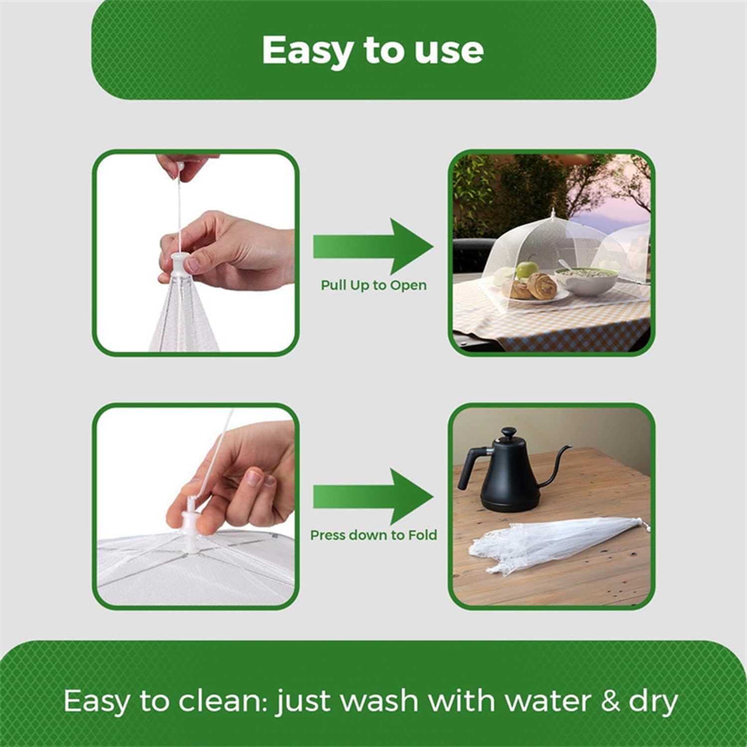 - Multi Occasion Use: Used to protect your food from insects! Very suitable for indoor and outdoor garden gatherings, barbecues, dining activities, and picnics. You don't have to constantly drive away small insects, just relax and enjoy!