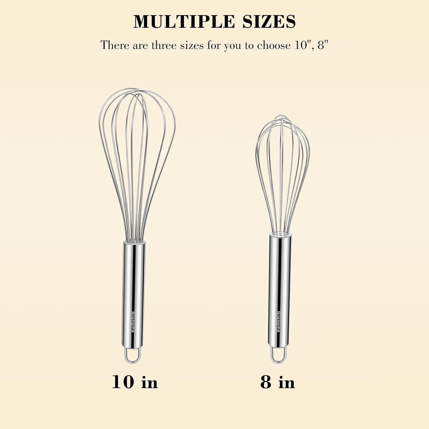 NileHome Whisk, Stainless Steel Wisk Set 8" 10" Kitchen Whisk Wisking Tool Kitchen Wisk Wire Whisks for Cooking, Whisking, Blending, Beating, Stirring-…