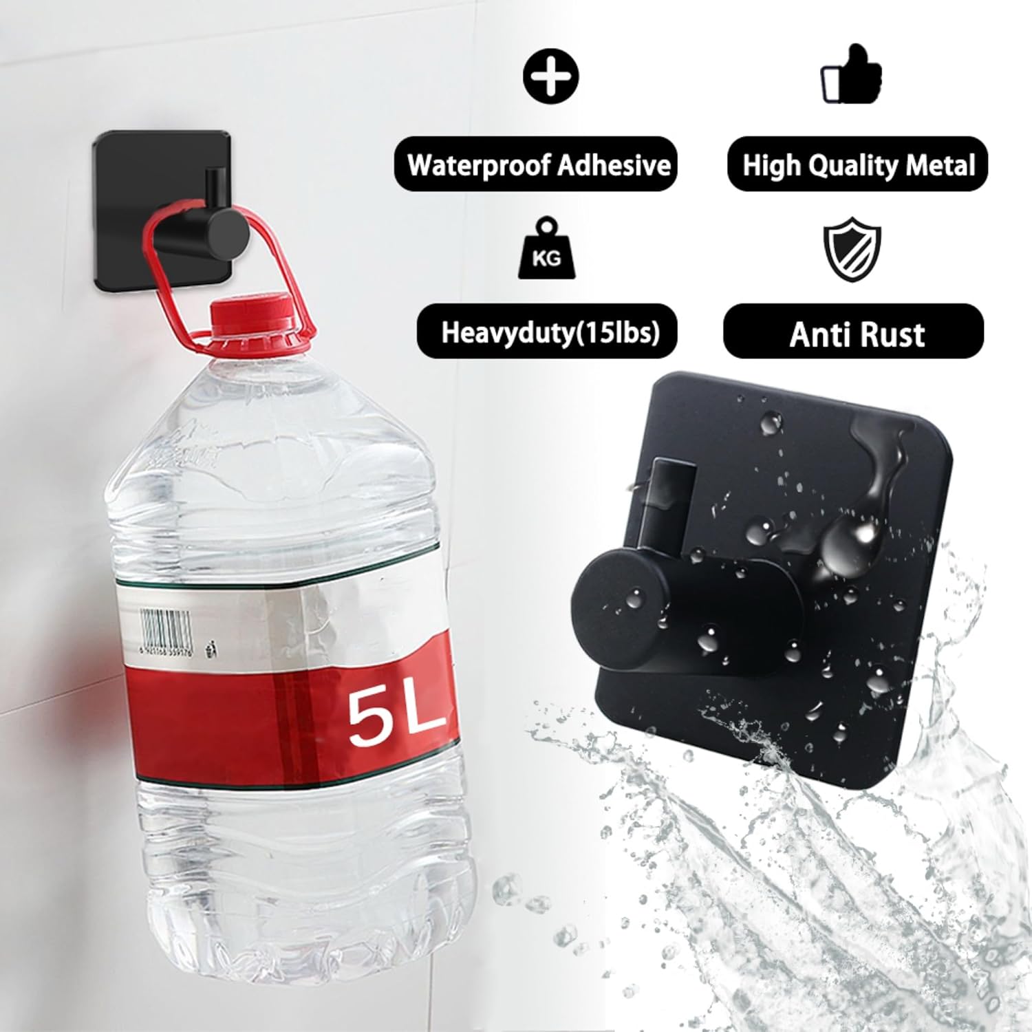 Adhesive Hooks for Hanging - 4 PCs, Towels Hooks for Bathroom, Sticky Hooks for Walls No Damage, Adhesive Hook for Outside, Kitchen, Bathroom, Office (Black 1)