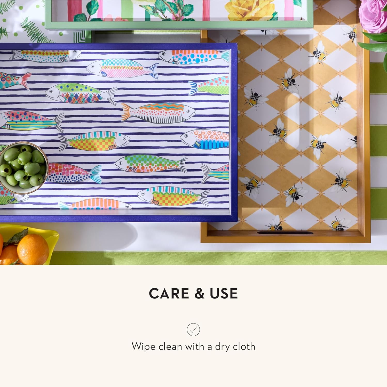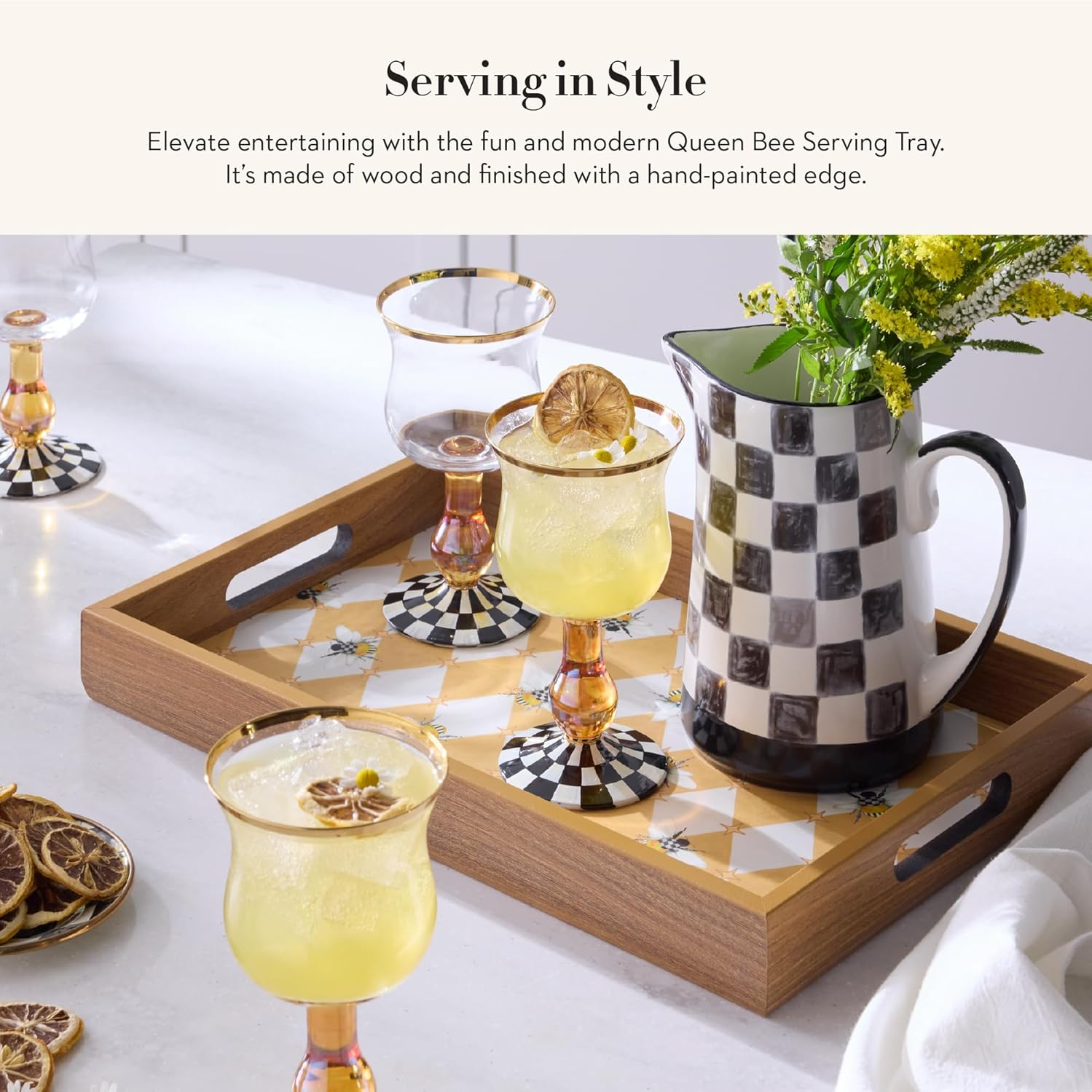 MACKENZIE-CHILDS Wooden Tray with Handles, Rectangular Tray for Serving, Queen Bee