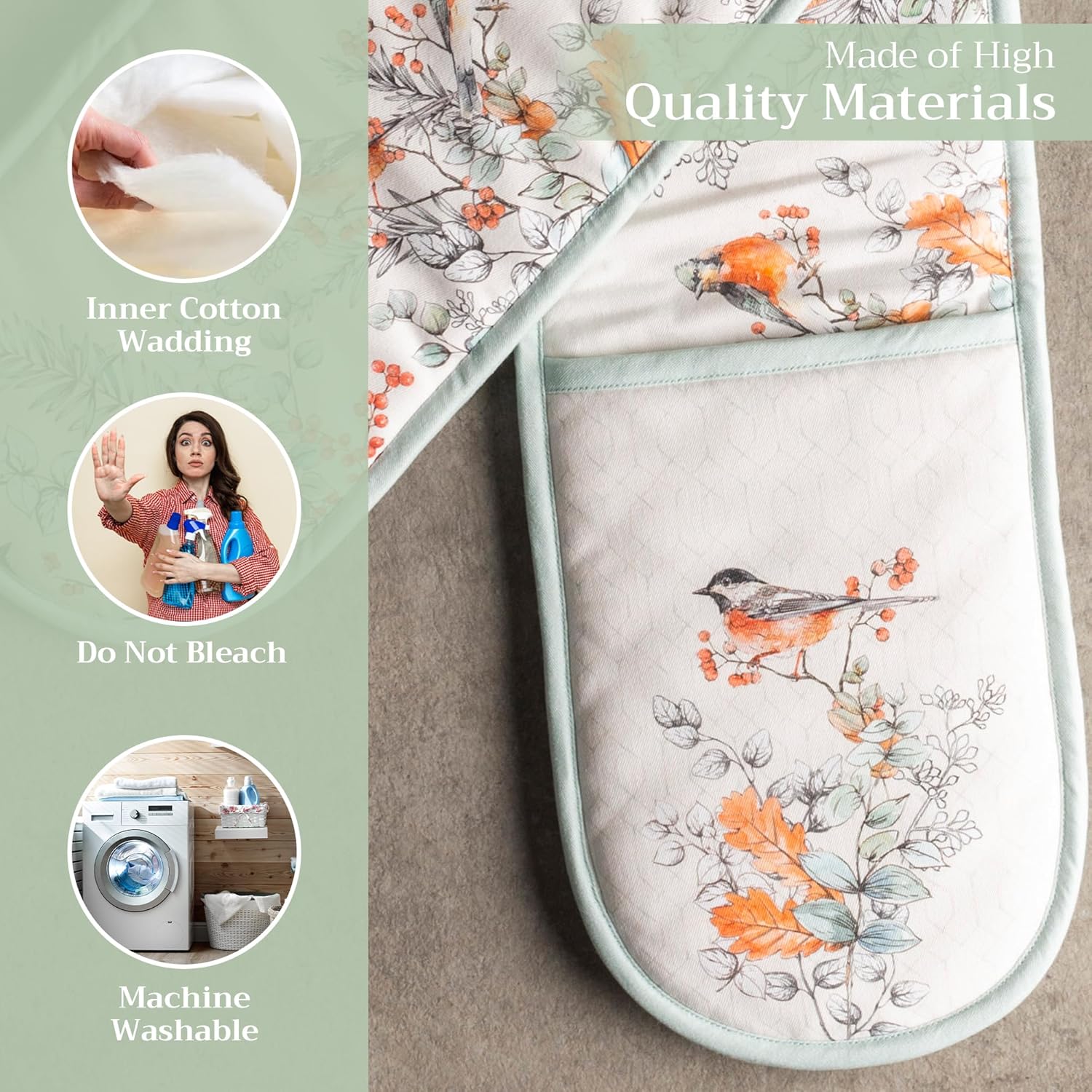 Maison d' Hermine Double Oven Mitt 100% Cotton Heat Resistant Cooking Gloves with Loop, Baking Barbeque, Handling Hot Pan, Whitish Shabby Chique - Thanksgiving/Christmas (7 Inch x 35 Inch)