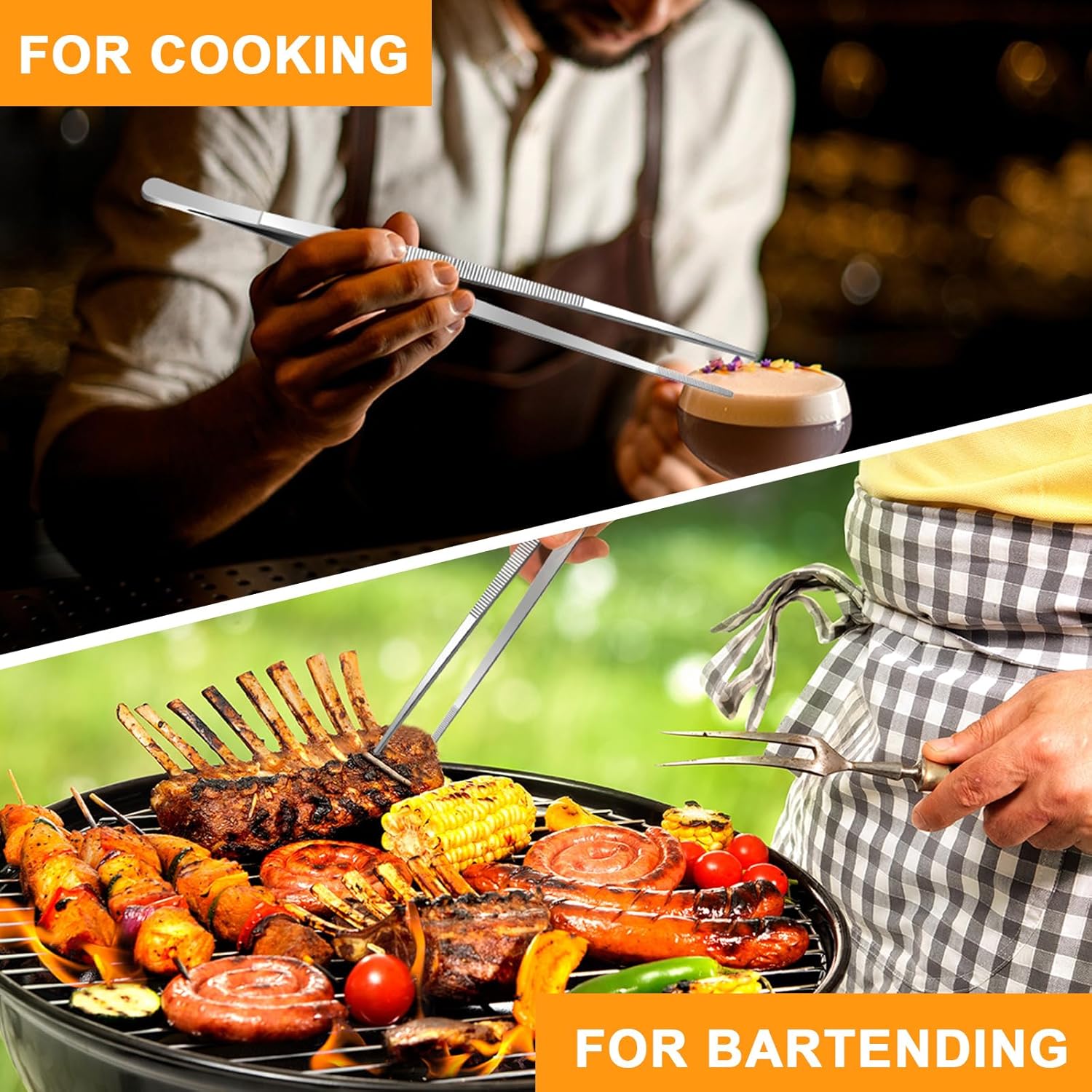 Yaomiao 4 Packs 16 Inch Bar Tweezers Silver Long Garnish Tongs Stainless Steel Kitchen Cooking Tongs Tweezers for Food Cocktail Korean BBQ Bartender Chef, Multi-use