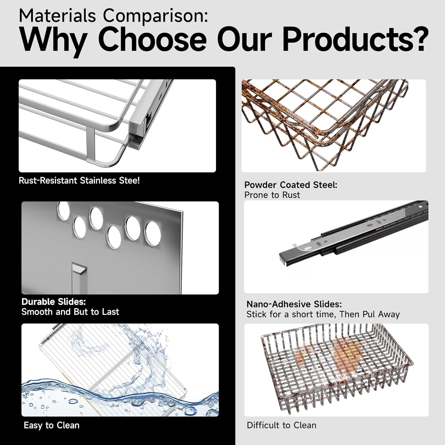 - High Quality Stainless Steel: This pull-out storage shelf is made of high quality stainless steel, the overall look is sturdy and stable, with a bright color that doesn't rust easily, load-bearing capacity up to 110b. Ideal for your kitchen, bathroom, under sink, wardrobe and pantry storage organizing.