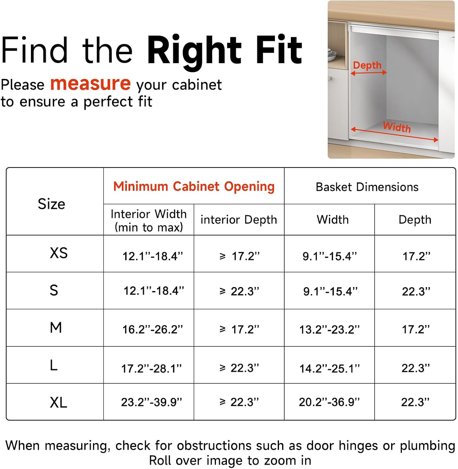 - Easy to Install: The slide out drawer is side-mounted. Follow the installation instructions step by step, measure the size of your cabinet and then hit the screws can be done easily. Please choose the size you need before you buy, please note that first measure the size of your cabinet before you buy, to avoid the trouble of return, It can fit in cabinets with a width of 23.2'' to 39.9'' and a depth of 22.5".