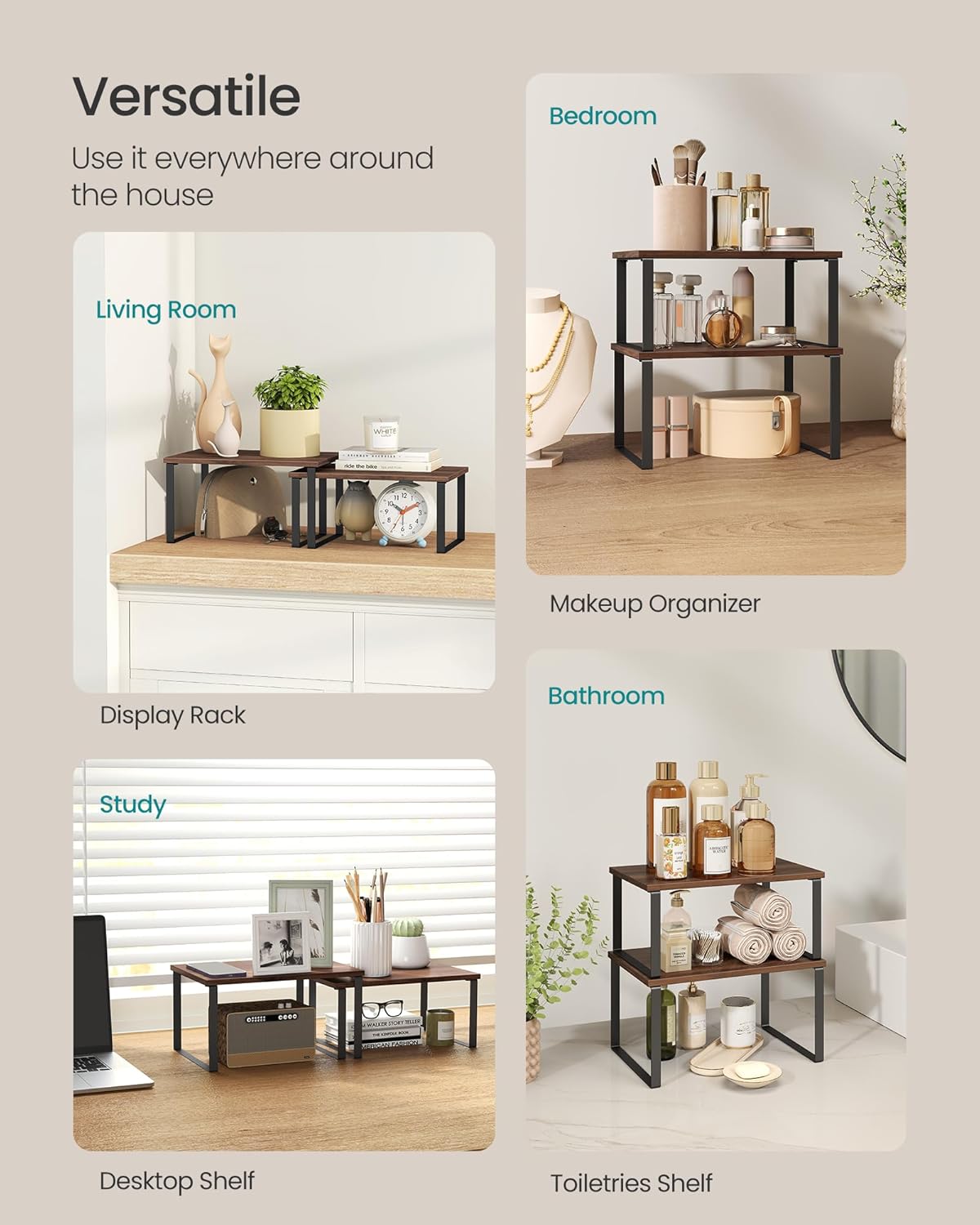 - [Versatile] They can be used in more than just the kitchen! Use them in the dining room as a way to elevate your table centerpieces, on your bedroom desk to organize your items, or even in your bathroom to neatly store your bathroom essentials
