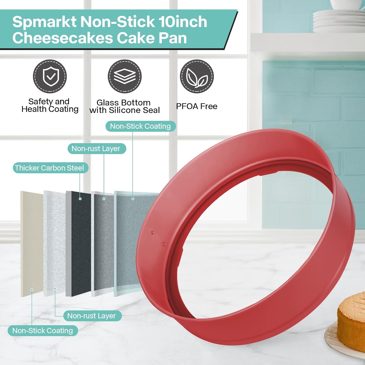 - 10-Inch Multifunctional Cheesecake Pan: Made of non-toxic food grade ingredients, it can be used in an oven at 450°F (230°C), perfect for baking cheesecakes, sponge cakes, layered cakes and more.