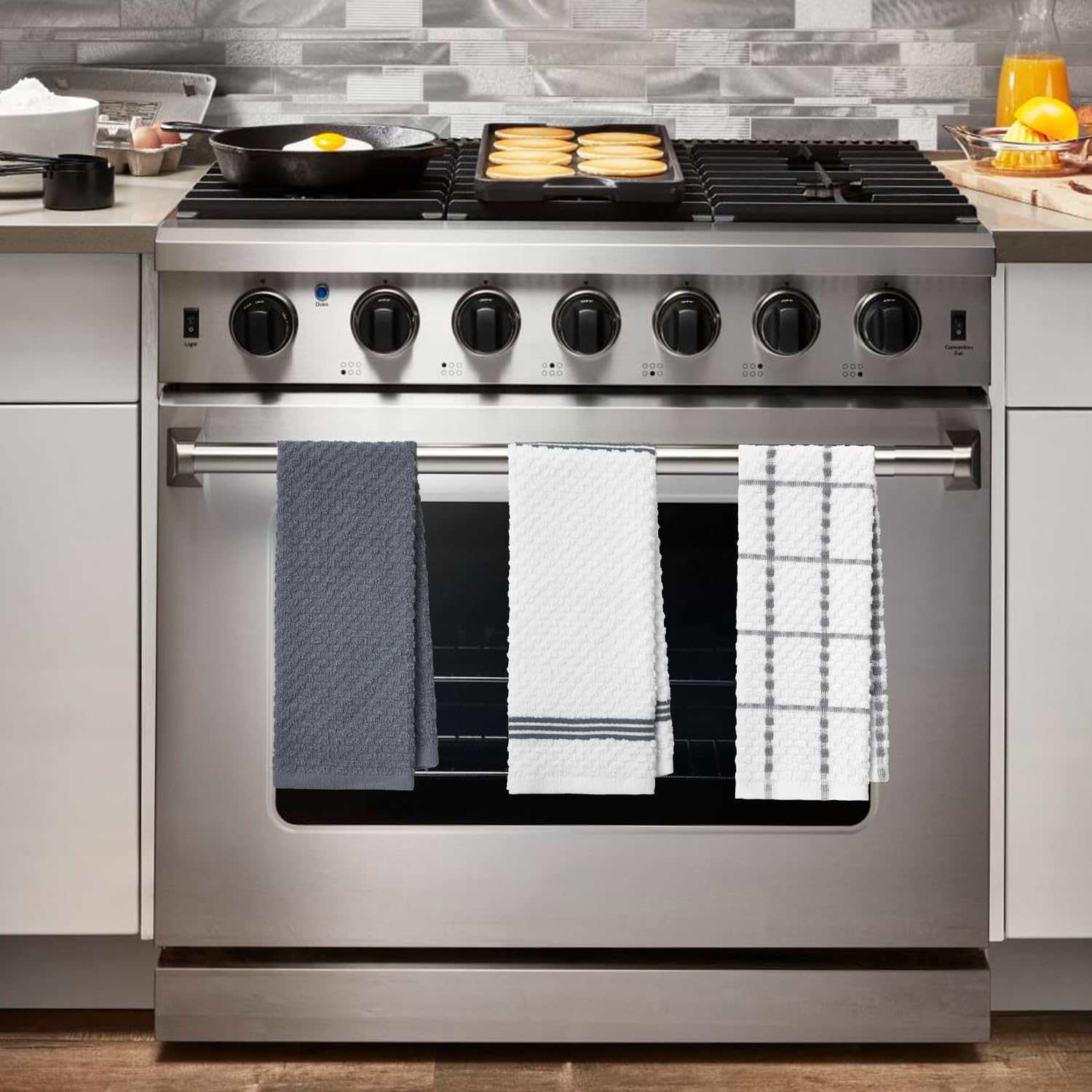 Artoid Mode Ring Spun Cotton Grey Kitchen Dish Towels, 15x25 Inch Ultra Soft Absorbent Quick Drying Household Cleaning Tea Towels Bar Towels Set of 6