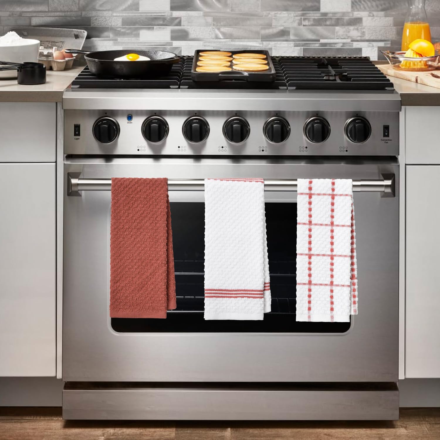 Artoid Mode Ring Spun Cotton Red Kitchen Dish Towels, 15x25 Inch Ultra Soft Absorbent Quick Drying Household Cleaning Tea Towels Bar Towels Set of 6